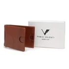 Product details: 7 Card slots Stainless-steel money clip RFID-protection for all cards Classy metal emblem Dimensions: 4.3" in x 3.1" in x 0.6" in (closed and empty) Weight: 1.9 oz (empty weight) Material: Full Grain Genuine Leather