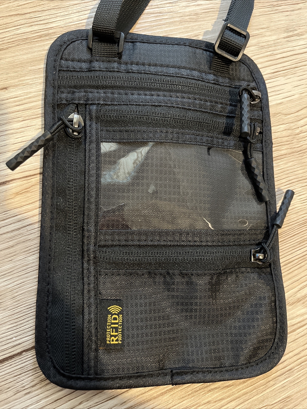 Brand New Passport Holder Slim Rfid Blocking Travel Wallet Unisex Black Anti Theft Travel Document Organizer with Adjustable Strap Travel Essential Neck Money Pouch to Protect Your Information This neck passport holder is lined with RFID blocking material to prevent unauthorized scanning of your credit card, debit card, bank information, smart card, RFID driver's license and other RFID cards. By using this passport holder, you can effectively protect your personal information from pickpockets and maintain your privacy while traveling in Europe or any other destination. This passport wallet comes with several compartments, providing you with convenient organization options. Travel wallet features three zippered pockets, a cash pocket, and an ID window for boarding passes. This design allows for easy security checks, and extra reinforced stitching protects your cash, passport, cards, and other valuables. This travel anti theft crossbody is made of waterproof, tear-resistant material, which makes this travel money belt stronger, more durable. The strap is made of soft and skin-friendly material that won't strain your back or neck from carrying a heavy travel document holder. The adjustable passport holders strap allows you to customize the hanging length of the travel pouch for optimal comfort and convenience. This travel money belt under clothes is designed with a breathable and moisture-wicking back panel, making it suitable to be worn underneath clothing, hung around the neck, or securely fastened to a belt. It offers a discreet and comfortable wearing way. This neck passport bag is not only fashionable, but also has many ways to wear it. Great value for crowded markets, airports, buses, trains, sporting events and music festivals. Virtually invisible to thieves, feel safe in any environment. See pictures for more item details Trusted Seller-Fast Ship!