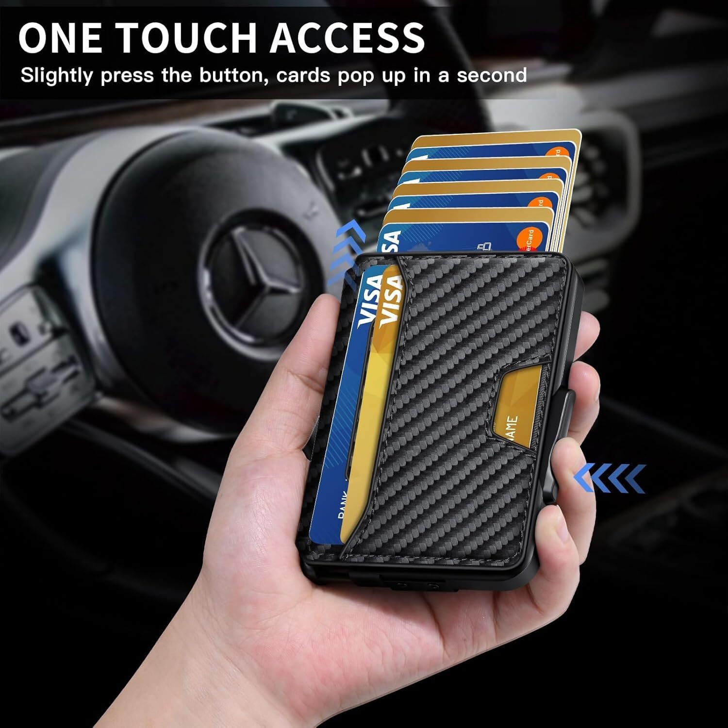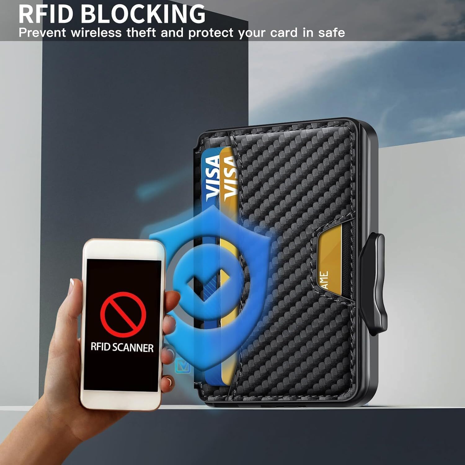 This wallet is a game-changer! Super slim yet fits all my cards and cash comfortably. The RFID blocking keeps my info safe, and the carbon fiber gives it a sleek, durable feel. Perfect for minimalists who want style and functionality. Highly recommend!