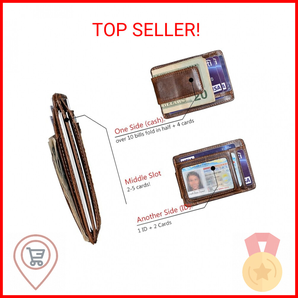 Money Clip RFID Front Pocket Wallet Men Leather Slim Minimalist Wallet Version: The money clip is made of high quality genuine leather, wear-resistant and durable with skilled line finish. It is stylish, practical with powerful magnetism. The RFID blocking technology of our money clip keeps you safe from malicious identity and banking information theft, protecting your important and personal information. Dimensions: L*W*H: 11*8*0.5cm, only 0.5cm thick, it is ultra slim and easy to put into your front pocket and carry with you wherever you go. It is perfect to fit in your front pockets. Construction: There are 4 Card Slots,1 ID Display Window,3 Change pockets and 1 Strong Magnetic Money Clip. You can carry plenty of cash, credit cards and ID card with this superior quality, RFID blocking genuine leather small wallet with magnetic money clip. Payments We accept the following payment methods PayPal and all credit cards Please pay as soon as possible after winning an auction, this will allow for quicker shipping times! Returns We do not accept any returns. Please be sure that what you order is the correct item that you intend to buy. Shipping Shipment processing time All orders are processed within 2-3 business days. Orders are not shipped or delivered on weekends or holidays. If we are experiencing a high volume of orders, shipments may be delayed by a few days. Please allow additional days in transit for delivery. If there will be a significant delay in shipment of your order, we will contact you via email. No PO Box or international shipping.