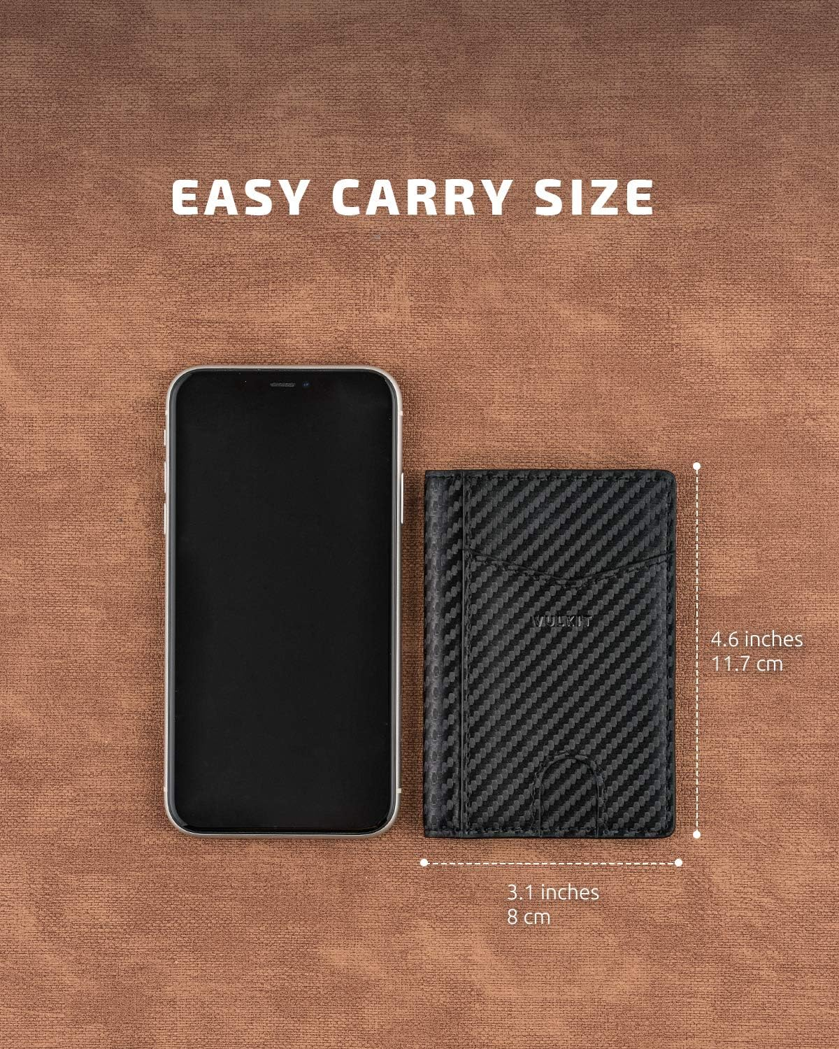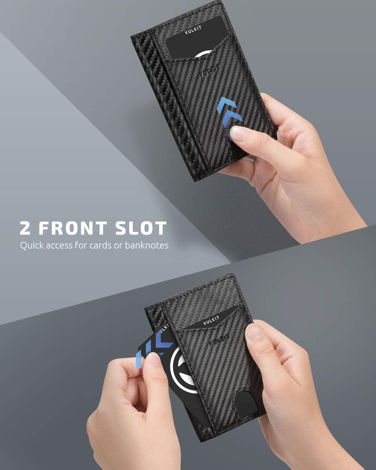 Product Description VULKIT LEATHER CARD HOLDER Entra 2 front pocket slots and 8 inner slots holds 10 cards and 10-15 bills. So slim but the capacity is enough for everyday use. Premium cross leather and vintage leather Many colors for your choose (Black, Mocha, Brown, Navy, Wine, Taupe) Dimensions: 4.6 inch*3.1inch (11.7cm*8cm) RFID BLOCKING Protect your cards from unwanted wireless communication. Ensure your private property safety. DURABLE YET STYLISH Keeping your cash and cards in place, making your package neatly, while looking fashionable and serving lots of colors to fits anyone. Minimalist Style Lighter and thinner than traditional wallets, more suitable for your pants pockets Easy access Easy access slot to frequently used cards Value Gift Best gift item for those who stand valuable to you