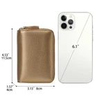 Small Women's Card Cases: Size 4.53 x 3.15 x 1.57 inch. Mini wallet light weight up to 0.12kg Leather Credit Card Holder: Made from the first layer of high quality cowhide. Luxury Genuine leather, soft and smooth, durable 2 Zipper Card Cases Holder: One side is the card area: 8 credit card slots, 2 bill slots, and the other is the clutter area: 1 partition in the middle bisects the compartment. Both sides can be used to store bill, change, keys, Band-Aids and other sundries. Clear layout and large capacity,easy access RFID Card Wallet for Women: Using special material lining, so that it has anti-digital theft and anti-demagnetization function to protect your card information security. It is mainly used to block more advanced and ultra-high frequency RFID readers from browsing and copying your information Great Present for Women/Girl: There is nothing better than receiving a carefully wrapped wallet from our brand or your loved ones. Premium material, trendy design with beautiful box makes our women wallet the first choice. A perfect present for Anniversaries, Birthdays, Valentine's Day, Thanksgiving and any other important occasions