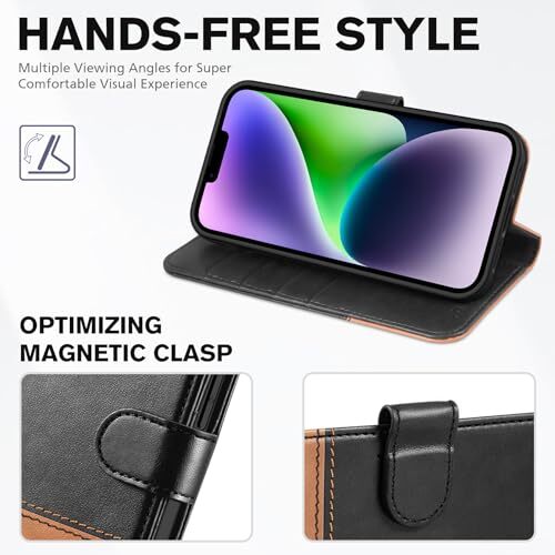 Return Policy Fast Delivery Trusted seller Wallet Case for iPhone 14 5G, [RFID Blocking] Card Slot Holder Stand [Shockproof TPU Interior Case] PU Leather Magnetic Protective Flip Cover Compatible with iPhone 14 6.1", Black & Brown Product Description Compatibility: Only Compatible With iPhone 14 (6.1") 5G 2022. Note: Do Not Fit other devices. This case is made from premium selected PU leather, providing a comfortable hand feeling and a super impression Highlights: (1). It is supported by advanced RFID blocking technology to block signals and protect your personal information effectively. (2). Can stand the phone up to watch something hands-free. (3). Magnetic flap to keep it closed and protected, secure magnetic closure Precise Cutouts & Card Slots: This iPhone 14 leather wallet case is designed specifically for your new iPhone, which allows full access to all features (buttons, speakers, cameras, etc.). The leather flip cover with 4 credit card slots and a larger money pocket, without having to take an extra wallet when going outside Fully Effective Protection: The iPhone 14 flip wallet leather case covers all corners and provides great dual-layer protection to your smartphone. The soft TPU full-body inner case comes with a shockproof edge and ensures your phone is against drops and bumps Lifetime : All phone cases sold in our store are covered with a warranty. If t are any non-artificial quality problems, please feel free to contact us to get a replacement or a refund Shipping Returns Payment Shipping Shipping is FREE to all addresses other than APO/PO boxes in the lower 48 states. All our stock ships from US-based warehouses. Shipped via USPS or UPS (depending on location and package weight) Unless stated otherwise, all orders will ship within 24-72 hours of your payment being processed. Check our feedback to see the great reviews of FAST shipping we offer. Returns Seller does not accept returns Payment We currently accept payment via eBay managed payments only. Once payment is cleared, we will dispatch your shipment within 1-3 business days. Please refer to the "Shipping" tab for more information regarding shipping speed to your destination.
