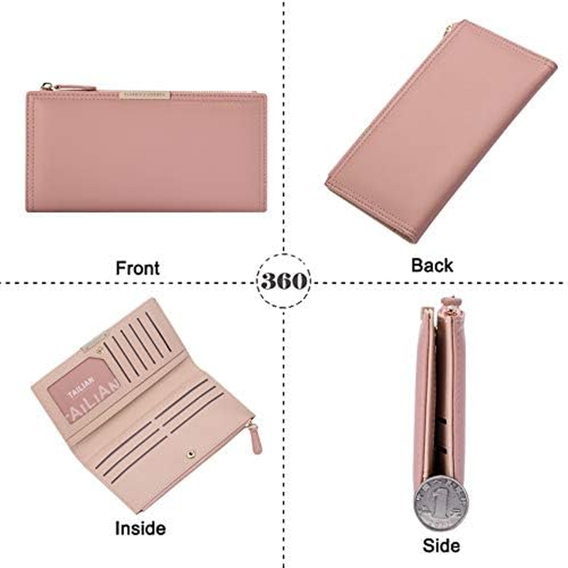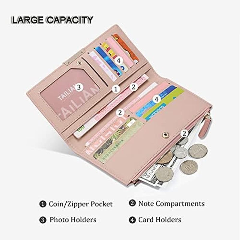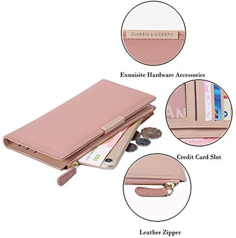Durability & Craftsmanship: Womens wallets features customized leather with a smooth zipper closure design which is durable and sturdy, slim and lightweight design rejects bulkiness, saving valuable space in your bag. Exuding a premium look and feel and high-quality hardware ensures that the wallet is built to last Pockets/Compartments: Small wallets woman has 11 credit cards slots, 1 ID window, 3 Cash Pocket and 1 extra zipper pocket for storing paper money and coin, Bi-Fold designed for you to keep your things organized well, can meet all your demand for a daily wallet Ease Of Use: Womens wallet is handy and easy to use, quick access in your pockets, purses or bags. And the portability can make you carry it anywhere. Compact Size: 7.67" x 3.93" x 0.78 " Rfid Blocking: Women wallet is equipped with advanced unique proprietary blocking material and effectively block signals from credit cards, debit cards, driver's licenses, and ID cards operating at a frequency of 13.56 MHz, protecting your privacy and money. Ensuring the security of your identity while you travel, shop, and conduct business Thoughtful Gift: Rfid wallet women is the quintessential gift for every occasion: Valentine's Day, graduations, birthdays, weddings, Mother's Day, Teacher's Appreciation Day, Anniversaries, Retirement, Halloween, Christmas, just to show some love Product Description Leather Wallets for Women Unique Bifold Credit Card Holder Wallet for Women Perfect choice when you want a wallet. Material: PU leather Dimensions: 7.68"L x 3.94"Hx 0.79"W Weight: 150g 11 card slots, 1 photo window, 3 Cash Pocket,1 zipper coin pocket / coin purse (can also hold your cellphone) Small Wallet for Women Slim Wallet for Women Small womens Wallet Our Slim Trifold wallets are equipped with advanced unique proprietary blocking material , which blocks RFID signals and protects the valuable private information stored on RFID chips from unauthorized scans. Tested & Approved by Independent Test Lab.Tested from 10MHz to 3000MHz, including 13.56 MHz in which the credit cards operate. Suitable Capacity for Your Use 11 x Credit Card Slots 3 x Banknotes 1 x photo window 1 x Zipper Pocket 1 Snap Closure and 1 Metal Zipper is Designed for You to Keep Your Cash Flat and Easy Access to the Cards You Need. Women Wallet