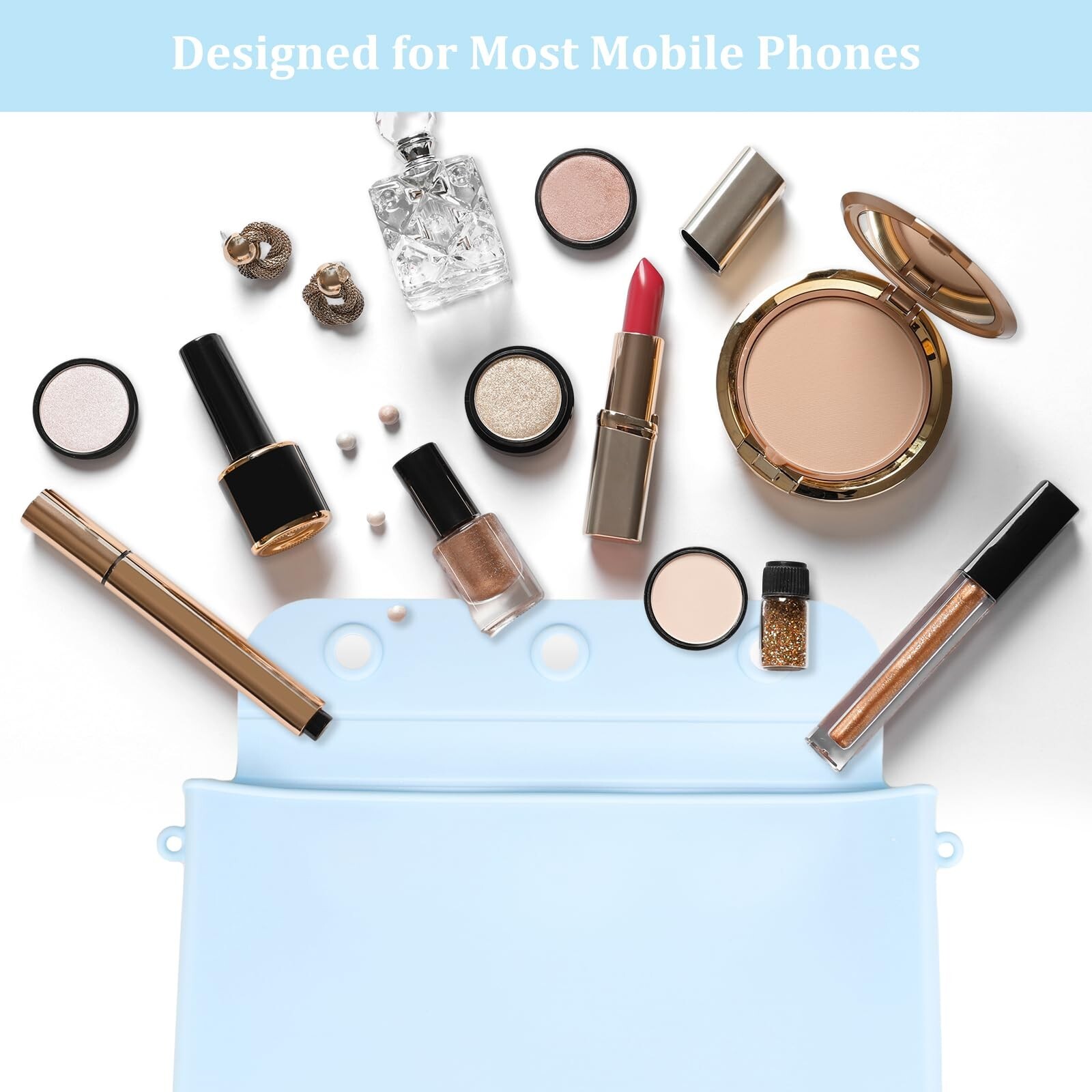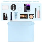 Silicone Makeup Bag, Travel Cosmetic Bag for Women with Chain, Slim Toiletry Bag for Traveling, Easy Carry Makeup Bag for Beauty Tools, and Brushes, Birthday Gifts for Girls-Light Blue Product Details Color: Medium (9"*7.4") - Light Blue Brand: HOOCEN MPN: Does not apply UPC: Does not apply EAN: Does not apply Product Dimensions: 9 x 7.4 x 1.38 inches Item Weight: 9.6 ounces Department: Women Country of Origin: China Soft and Safe Silicone Cosmetic Bag -This cosmetic bag is made of soft silicone, durable and long-lasting, skin and environment friendly. Perfect for Daily Use or Travel - Whether you are traveling or on business, cosmetics and toiletries are a great help when you go out. This large capacity travel cosmetic bag can be used to store the items you need, easy to carry. Fashion Design - This silicone cosmetic bag is lightweight and compact, making it easy to pack and access all your essentials. Featuring a modern design with dual magnet closure, it prevents brushes from spilling while traveling. The convenient flap closure is easy to open and close for quick access to your cosmetics. Comes with its own stylish chain that, when mounted on either side of the bag, allows you to hang the bag on your dresser, bathroom, bedroom and anywhere you need it. Easy to Clean - The silicone makeup bag is easy to clean with a damp cloth or rinse directly with water, you can quickly remove those stubborn mascara, lipstick and other traces. Perfect Gift - This silicone cosmetic bag is elegant and stylish, soft and eco-friendly, easy to carry and clean, ideal gift for makeup lovers and frequent travelers. You can give it as a gift to your family, loved ones, colleagues and friends on special days.
