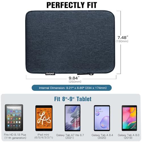 Return Policy Fast Delivery Trusted seller 8-9 Inch Tablet Sleeve Case for iPad Mini 6, iPad Mini 5/4/3/2/1, Galaxy Tab A7 Lite 8.7/Tab A 8.0/Tab A 8.4, Fire HD 8 & 8 Plus 2020, Portable Protective Bag with Pockets, Space Gray Product Description 【Compatible with】 Designed for 8-9 inch tablets, this protective sleeve is compatible with iPad Mini 6, iPad Mini 5/4/3/2/1 / Galaxy Tab A7 Lite 8.7 / Galaxy Tab A 8.0 (2017-2019) / Galaxy Tab A 8.4 2020 / Fire HD 8 & 8 Plus 2020 / ZenPad Z8s 7.9". 【Material Premium】 Made from premium polyester material, it is water resistant, sturdy and very durable, which can can effectively keep you tablets from water, dust, drops, bumps, and cosmetic damage. The simple and stylish style gives your device a nice look, and it is suitable for both men and women. 【Exterior Pocket】 The sleeve with a small pocket provides enough space for you to keep some small items such as cables, USB flash drives, mouse, earphone, pens, notes, cards, keys, etc. 【Easy to Carry】 Its slim design allows you to easily carry the case by hand and slide into your backpack, briefcase or other bags. It is easy to carry it wver you go. 【Item Dimensions】 External dimensions: 10.24 x 8.07 x 0.79 in / 26 x 20.5 x 2 cm (L x W x H). It can perfectly fit your tablet with keyboard case. Shipping Returns Payment Shipping Shipping is FREE to all addresses other than APO/PO boxes in the lower 48 states. All our stock ships from US-based warehouses. Shipped via USPS or UPS (depending on location and package weight) Unless stated otherwise, all orders will ship within 24-72 hours of your payment being processed. Check our feedback to see the great reviews of FAST shipping we offer. Returns Seller does not accept returns Payment We currently accept payment via eBay managed payments only. Once payment is cleared, we will dispatch your shipment within 1-3 business days. Please refer to the "Shipping" tab for more information regarding shipping speed to your destination.
