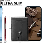 【CLASSIC STYLE AND SLIM DESIG】 This slim Minimalist wallet being 0.5 inches thicks, sized 4.3" x 3.1"Total of 11 available card slots. along with a detachable metal money clip.The outside notch allows you to push out the cards easily.Perfect for carrying all debit, credit and all other cards.meet your everyday needs. 【CLASSIC AND DURABLE】: We know that most wallet sellers on the market use artificial leather in order to increase their profits, and it is frustrating that there will be serious wear and skin peeling after about half a year of use! Therefore, We choose high-quality microfiber materials with higher cost and stronger durability. In this way, it not only come with comfortable touch, but also durable enough with 5 years guarantee that the wallet will not wear out or peel off. Trust us, time will tell 【DETACHABLE MONEYCLIP】The high-quality metal money clip allows you to carry a few bills, and it is detachable. If you need to carry more cash or bills, don't forget that the men's wallet also has a large pocket, which is a unique design and very convenient. 【RFID BLOCKING PROTECTION】Each GSOIAX men's wallet is equipped with advanced RFID theft prevention technology. Its built-in unique metal composite material can completely block RFID signals of 13.56 MHz or higher, preventing any unauthorized scanning and theft, protecting your funds and information security. 【GIFT BOX PACKAGING】This slim wallet comes in nice gift box packaging, it is a perfect present for birthday, Thanksgiving, anniversaries, Fathers Day, Valentine's Day, Christmas to your bf, hubby, dad, friends. Product Description