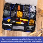 【34 Compartmets Tool Organizer】 Double side design, removable dividers are easily slide on and off to customize the storage space, for storing tools, bolts, screws, small parts, fishing tackles, crafts and many other items 【Heavy Duty Material】Toolbox organizers made of durable and heavy duty plastic material, Well design with professional looking. Blue safety clasp and compartment, black body, perfect blend of colors 【Transparent Box】 We’ve made it easier to identify the tools or screws inside with a transparent lid to help you find the right in seconds; great for personal or professional use 【Portable & With secure latches】 This hardware organizer ensures that whatever you inside will stay put. It also has a convenient carrying handle, making it portable friendly. Easily it in your garage, closet, shed, or vehicle 【24-hour 】 If you meet any problems, please feel free to our team and we will do our best to help you fix your issues