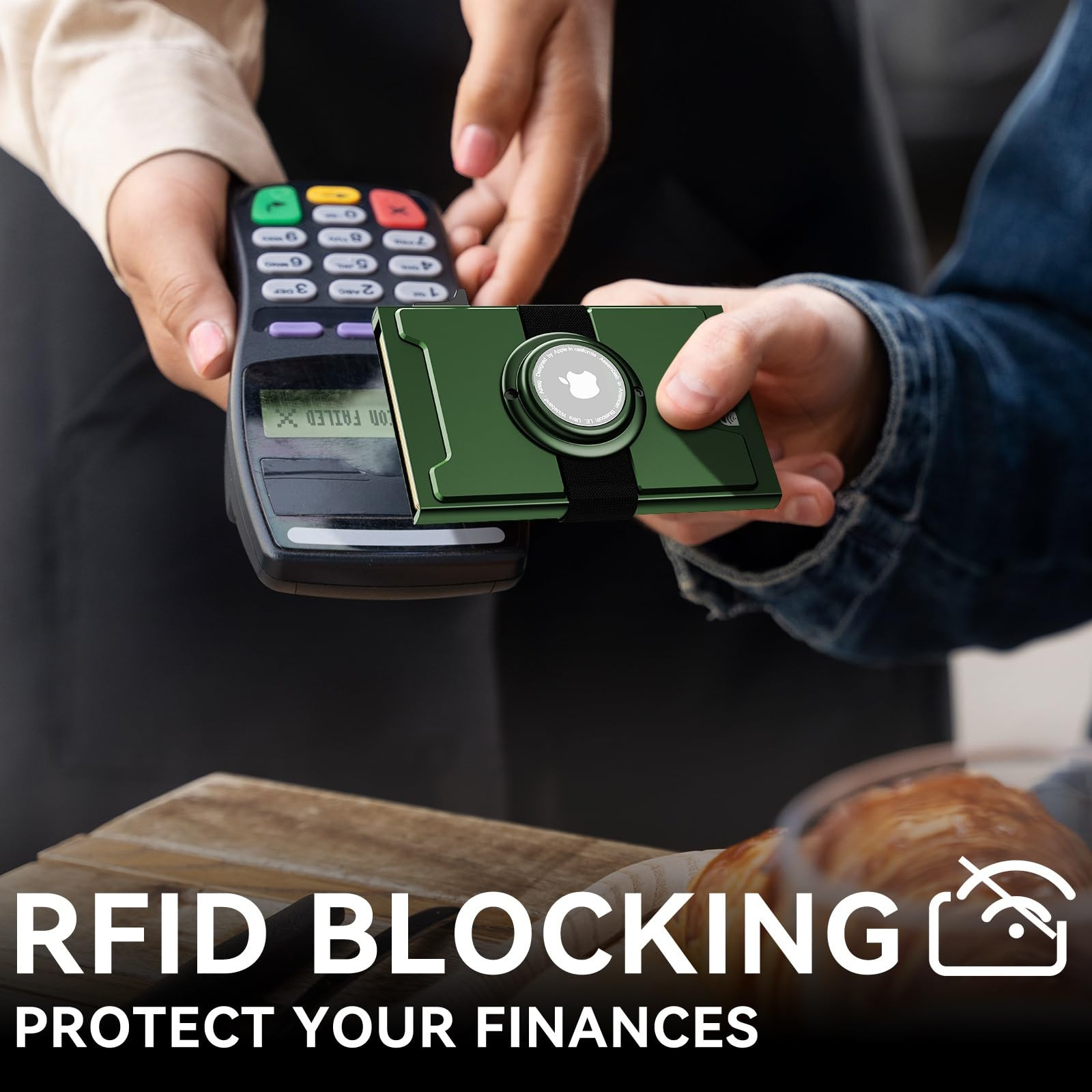 12+Card Holder & Cash Band: The metal wallet is bound by a smart card case and an extended backplate with elastic straps. The metal ejected card case can hold up to 6 cards, and the backplate can hold up to 6+ cards, depending on your needs. Elastic straps can be used to bind cash on hand. Secure Card Clasp Design: the smart wallet Upgrade the elastic card clasp to prevent cards from being flung out. RFID Blocking Security: The smart wallet use advanced aluminium technology Protect your sensitive card information with our RFID-blocking wallet, keeping your personal and financial data safe from unauthorized access. Slim Wallet for Men: A slim minimalist wallet for men, light money clip wallet, Fashionable and convenient appearance. Flexible webbing greatly improved the card holding capacity, very convenient for card carrier. Small size Free up more personal space. Gift for Men: Great Gift for father boyfriend husband brother, male friends at birthday, Anniversary Christmas, Valentine day, father's day, Festivals. The wallet is suitable for everyday carry, travel accessory, outdoor adventure ,hiking trip, business travel, graduation ceremony.