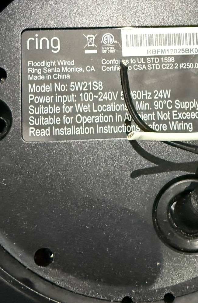 Ring Floodlight (no camera). Used. Works fine, I just swiped it out for a floodlight with a camera. As pictured, what you see is what you get.