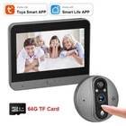 2025 NEW PRODUCT--2.4Ghz Wireless PIR Doorbell Outdoor - NO APP, NO NETWORK, NO WIFI, NO SUBSCRIPTION - PIR detected, monitor ON - Monitor can always ON, but battery lasts 4 hours. But monitor screen is portable, you can charge it 24/7 - IP65 Outdoor Waterproof Support ONLY 2.4Ghz Wi-Fi to connect to APP.5Ghz Wi-Fi Not Supported! Monitor connect door bell camera via CABLE; It have DOORBELL BUTTON on camera part! 3MP Tuya Smart Peephole Viewer WiFi Digital Door Viewer (1 Doorbell 1 Monitor) - Built-in 5000mAh rechargeable battery with 4.3' Monitor; Adjust Volume via 1-100%, No worry about distburb others! - When press door camera, monitor view will auto pop-up; PIR triggered, monitor will NOT AUTO ON; - Support Alexa/Google Announcement or Alexa Echo show/Google Chromecast live view. ANNOUNCEMENT: - when you press door camera, the ALEXA ANNOUNCEMENT with " someone at the smart doorbell(DEVICE NAME)" VOICE COMMAND LIVE VIEW: - Voice Command to wake up door viewer with: alexa, show me device name ; or hey, google, show me device name. MAKE SURE SLECT ALEXA SKU for this function 【Tuya Smart 4.3" LCD Digital Peephole Door Viewer Camera 3MP 1080P】 It can connect to WiFi router wirelessly. You can monitor (handheld including smartphones, Android tablets) and one or two-way intercom with noise reduction (view visitors, video calls, snapshots, recordings, etc.). The system function menu is located in the mobile APP console instead of the indoor display. (The device is widely used in homes, apartments, villas, hotels or offices, etc.).At the same time the large 4.3" LCD screen enables you or your family to see out the door clearly and sharply. 【PIR detection and 166° Wide Angle】 Using 3MP Wide View Angle:Diagonal 166 °;Horizontal 137 °;Vertical: 75°, automatic switching of day/night vision sensitivity (adjustable; distance is about 3-4 meters), TFT color LCD display, suitable for AHD images and videos. Motion detection (PIR motion sensor can automatically detect body movement and trigger push messages and videos (stored to TFT card or mobile phone) within seconds, keeping your home safe 24 hours a day.166° Wide Angle, Easily Maximize Your Home Security with a Clear View of Your Doorway. 【Two-way intercom brings convenience】 You can tell the courier where to put the package, or warn strangers, theft, voyeurs, etc. to stay away from your house. No need to open the door or communicate face-to-face, the smart doorbell camera with two-way intercom function can save your family from unnecessary danger or accident through the APP. 【Long-lasting battery and app control】 Built-in 5000 mAh rechargeable large capacity battery supports 30 days long standby (usually 3-5 calls per day), low battery reminder and USB port charging. This digital door viewer supports both iOS and Android, download the Smart Life App to receive every detail of what happens every day at your front door anytime, anywhere. Never miss a visitor or prevent theft, strangers or voyeurs. 【TF Card or Cloud Storage】 Support Max. 128G TF Card (Not Included) for local or event recording. Cloud storage need subscription! 【Peephole Diameter and Door Thickness Requirements】 Please note that the installation requires a hole through which you can connect the camera to the screen. If there is no peephole, please drill a peephole with a diameter of 15 to 60 mm in a door with a thickness of 35 to 145mm. Tuya WiFi 3MP 1080P Peephole Door Camera Viewer 4.3 Inch View Angle and PIR Motion Detection You can see within a 166 degree range and if someone moves in front of you, it will also be detected 3MP 1080P High Resolution Peephole Door Camera Provide high clear day and night view Battery Capacity and Usage Duration 1-2 months' Use with 5000mAh Battery Built-In based on 10-20 events per day; Battery NOT replaced It takes at least 8~10 hours to charge,you must use 5V1A charger,do not use fast charger!Please note,otherwise the battery is easily demaged. Alexa Google Door Press Announcement When someone press door camera, alexa/google devicce will have announcement" Someone at the DEVICE NAME" Alexa Google Door Press Announcement and Live View - When someone press door camera, alexa/google devicce will have announcement" Someone at the DEVICE NAME" and Echo show or Chromecast will pop up the LIVE VIEW. - You can also wake up the doorbell via voice comamand alexa, show me device name ; or hey, google, show me device name. PRODUCT SKU WITH ALEXA WORKS SUPPORT THIS FUNCTION Can Adjust the Volume Low Battery Reminder and App Notification Product Size Information Door Thickness and Peephole Diameter requirements: Smart Multi-View You can see the scene under four lenses at the same time, and it is a color vision Share to the one you loved! Download the app " Smart Life" or " Tuya Smart" from iOS APP Store or Google Play to start smart life. OTHER COLOR FOR REFERENCE!