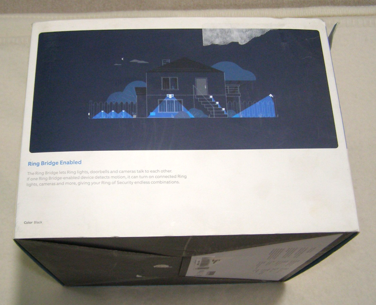 The Ring Smart Lighting Floodlight is a powerful outdoor lighting solution with 2000 lumens of clear white light. It is wired bridge-enabled and not a camera, making it easy to control with remote or app. This floodlight is designed for outdoor use and can be powered by corded electric or solar energy. The sleek black design with a diameter of 7.1 inches and a height of 8.35 inches makes it a stylish and functional addition to your yard or garden. Additionally, its smart home compatibility with Amazon Alexa allows for convenient voice control. RING SMART LIGHTING FLOODLIGHT WIRED BRIDGE ENABLED / NOT A CAMERA / 2000 LUMENS PLEASE LOOK AT PICTURES BOX IS NOT IN MINT SHAPE