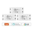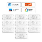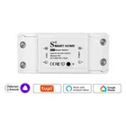 Tuya DIY smart switch introduction DIY WiFi Smart Light Switch Universal Breaker Timer Wireless Remote Control Works with Alexa Google Home Smart Home Automation Here we have TWO versions of Smart Switch Breaker, TUYA Version and eWelink Version. And the details for each version list here: TUYA Version: Main Features: I.Voice control:once you have this switch,you can connect it with Amazon Alexa(Amazon echo/dot/tap) or Google Assistant for voice control. II.Wi-Fi Remote Control:You can use "Smart Life" APP in your smart phone to control the switch wirelessly with Wi-Fi or 4G network.no hub required. III.Timing Function:Take full control of your home or office lights thanks to schedule timer that will allow you to plan the exact time to turn lights and appliances on/off automatically IV.Share Device:This samrt switch can have several control sites shared by different family members.one mobile phone can control many switches also. V.Add More Features with IFTTT:'If this,then that' is a free web-based service the let you do amazing things with your light switch, turn lamps,fans or other electronics on before you back home or off, Supporting IFTTT as well. Product information Current: 10A Material: Plastic Switch Type: Remote control Power Supply: Neutral+Live wire Rated Voltage: AC 90V-250V / 50-60Hz Rated Power: 1800W Wireless standard: IEEE802.11b/G/N Safety: WEP/WPA-PSK/WPA2-PSK Radio protocol: Wi-Fi 2.4GHz b/g/n Static power loss: Less than or equal to 0.3 WEncryption: WEP/AES/TKIP Max Load: 10A Voice control Voice control to Switch on or off the lights Share Control Timer and Schedule set up timing schedules to save the trouble of overcooking the dish single / repeat /countdown / loop timer APP remote control Connection Diagram eWeLink DIY smart switch introduction Model Number: eWelink smart switches State of Assembly: Ready-to-Go name: mini WiFi ewelink remote smart switch voltage: AC 90-250V 50/60Hz rated current: 10A resistive load: 2200W(AC220V) inductive load: 500W(AC220V) capacitive load: 200W(AC220V) incandescent lamp: 2200W energy-saving lamp: 300W LED lamp: 300W WiFi standard: IEEE 802.11 b/g/n 2.4GHz APP: ewelink APP material: ABS V0 How to connect Tuya/Smart Life APP