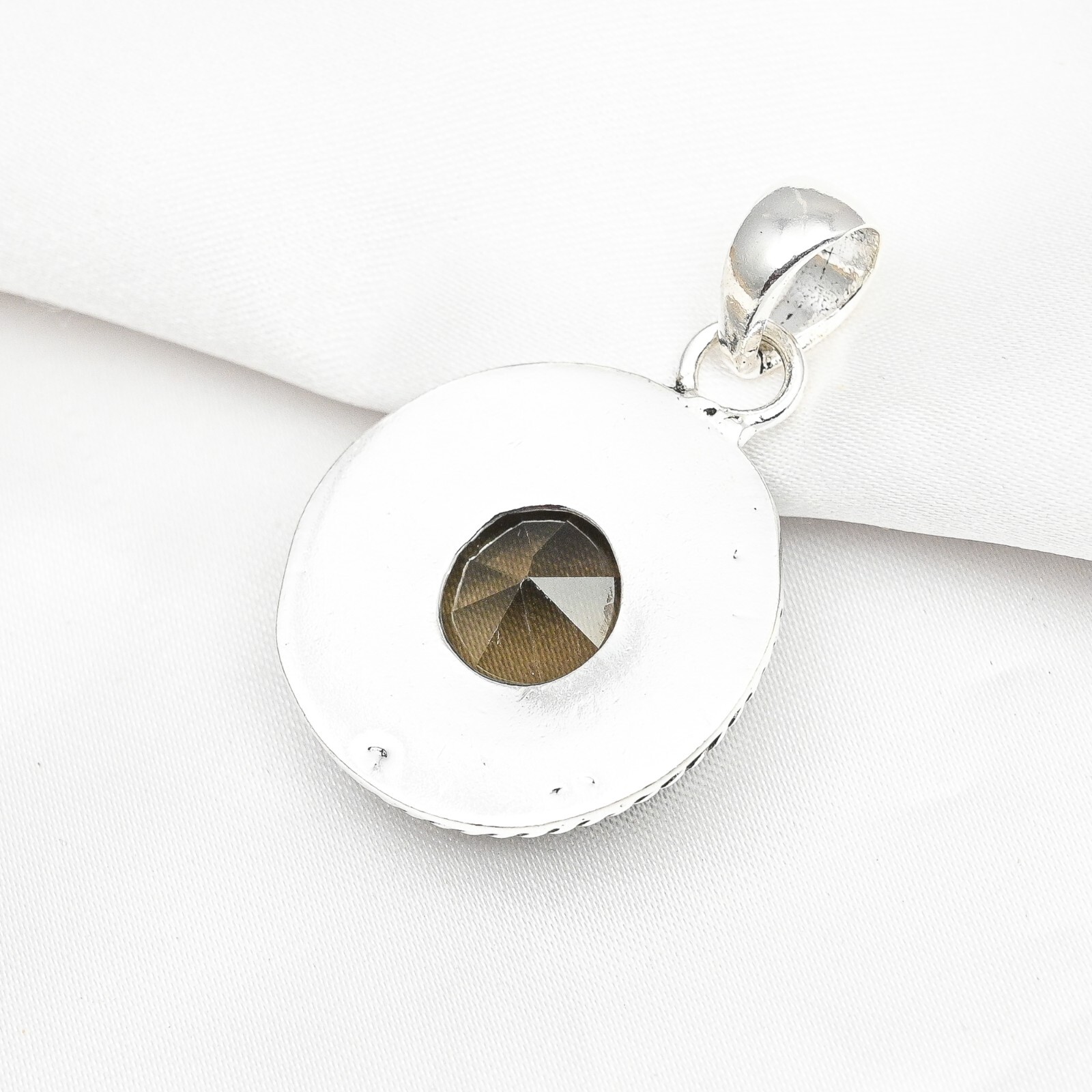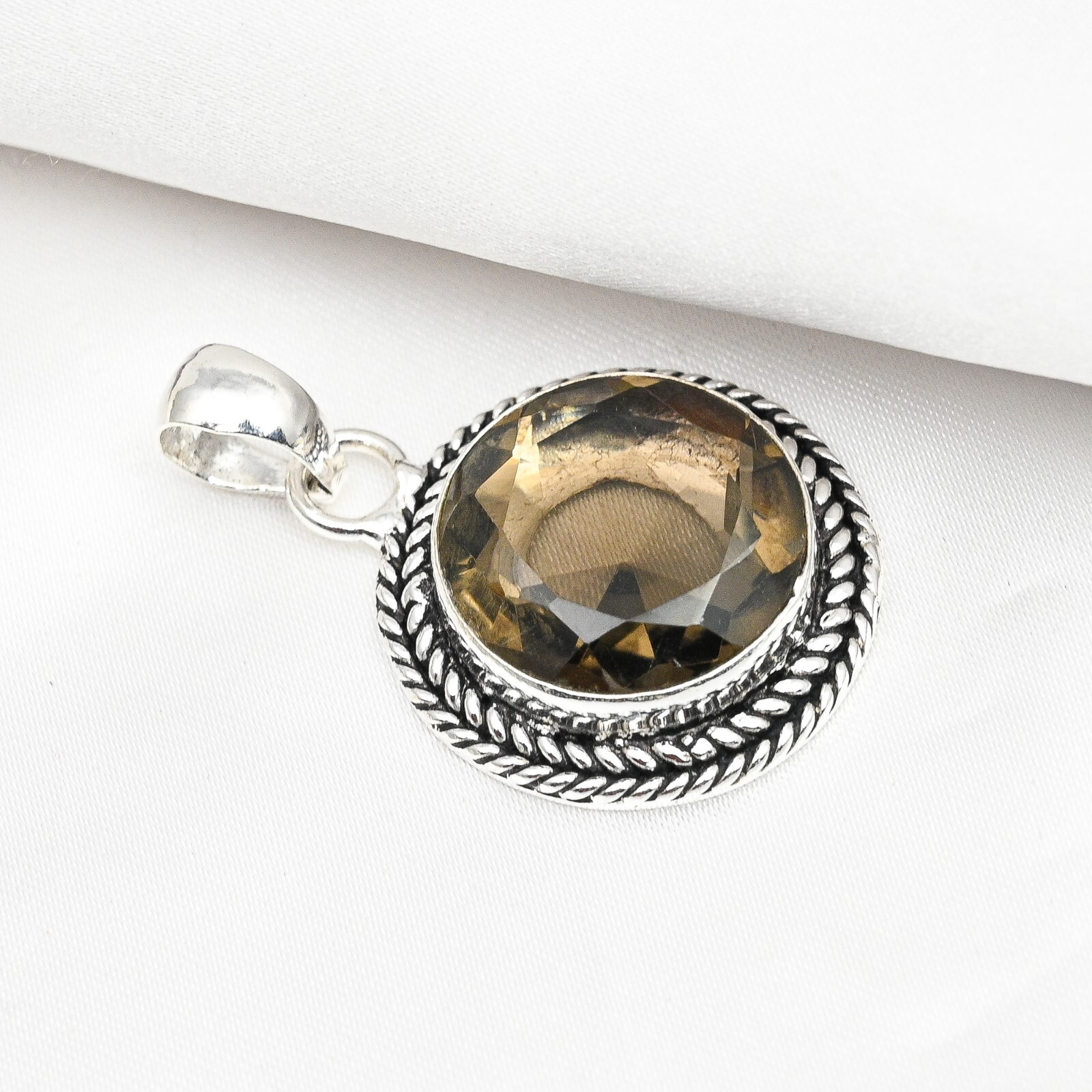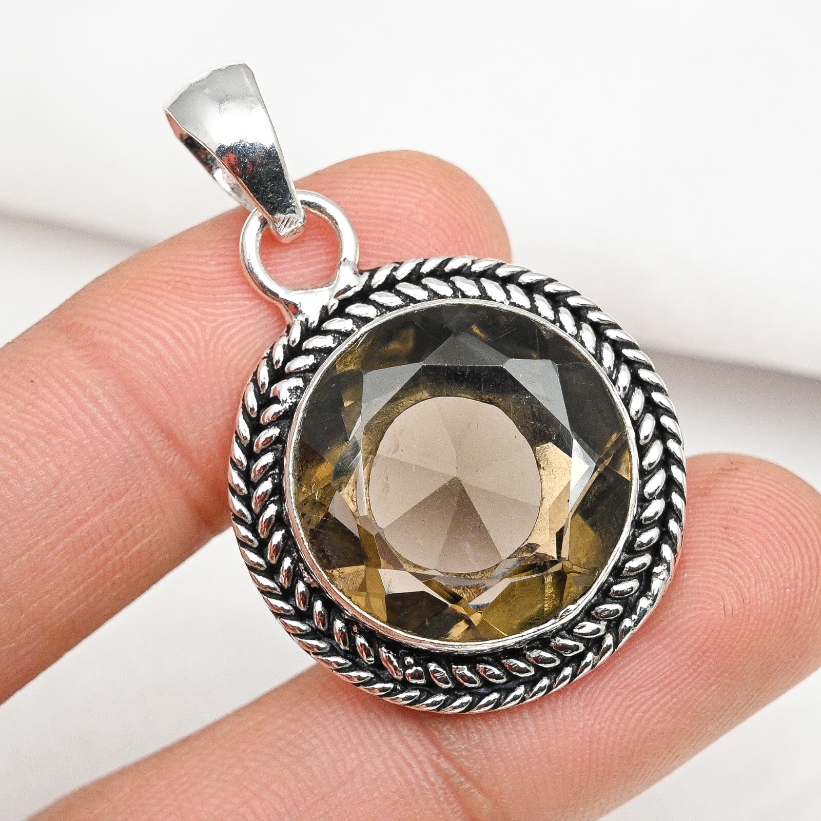 Metal Purity:925Pendant Shape:Same As PictureNumber of Diamonds:N/AMain Stone:Smoky TopazSetting Style:Same As PictureCountry of Origin:IndiaMain Stone Creation:Lab-CreatedBase Metal:Sterling SilverMain Stone Color:BrownSecondary Stone:No StoneCertification:N/ADiamond Color Grade:N/ADiamond Clarity Grade:N/AFeatures:HandmadeStyle:PendantColor:SilverType:PendantTotal Carat Weight:10 carat and aboveNecklace Length:1.69"Pendant/Locket Type:Same As PictureBrand:HandmadeCollection:HandmadeMain Stone Treatment:Not EnhancedMaterial:GemstoneMain Stone Shape:RoundTheme:Beauty, Bohemian, Ethnic, Halloween, Love, NatureCut Grade:N/ACountry/Region of Manufacture:IndiaMetal:Sterling SilverClosure:Same As PictureChain Type:N/ANumber of Gemstones:1Occasion:Anniversary, Birthday, Christening, Christmas, Engagement, Father's Day, Mother's Day, Valentine's Day, WeddingColored Diamond Intensity:N/A