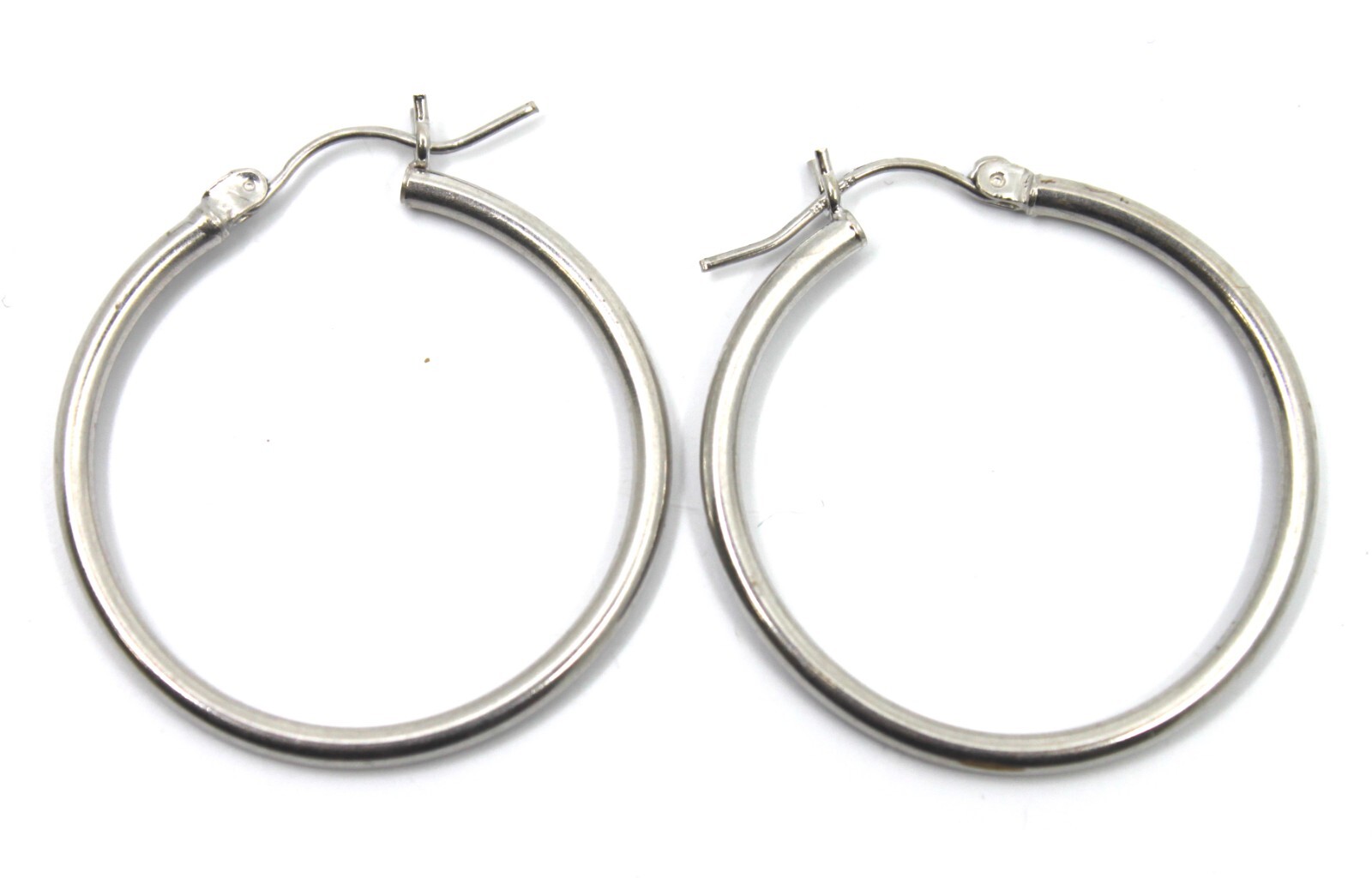 14k Solid White Gold Smooth Hoop Earrings 1.25"in Description SIZE :1.251" inch diameter METAL : 14K Solid white gold WEIGHT : 2.4 gr. HALLMARK : 14K CONDITION : Pristine condition OTHER : Jewelry gift box included. Payment We accept Paypal and Credit Cards . New York State residents pay 8.875% in sales tax. International Shipping We can ship almost anywhere in the world! Please contact us prior to bidding for accurate shipping costs. We cannot ship jewelry to certain countries due to import restrictions so please check your country's import regulations on precious stones and metals. Returns Returns will be accepted -14 days return policy . Please contact us with any questions or concerns before making this purchase. Authenticity We guarantees that all products sold by us are 100% authentic brand name We do not sell imitations of any sort and only carry genuine Payment must be made within 3 days of the end of the auction Please feel free to contact us concerning any questions . About Us We've been in the high-end jewelry trade for more than 30 years in our Midtown Manhattan location and have developed a reputation as an industry leader in brand name and estate jewelry. Other We reserve the right to re-list items not paid for after 7 days. We reserve the right to NOT accept payments from Unconfirmed Paypal Addresses. Do NOT Confirm your Bid unless you are willing to pay that much for the piece. We would not carry any responsibilities for any possible taxes or duties that might occur in your local countries. #010910