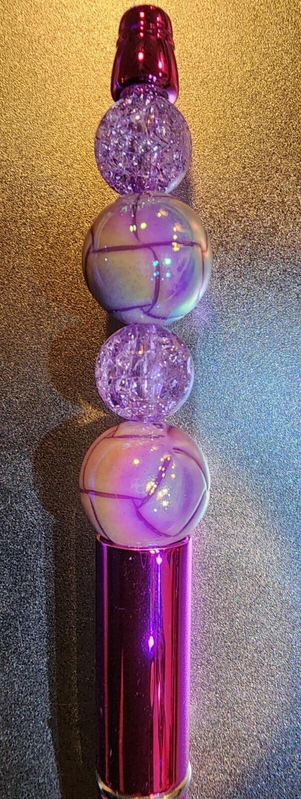 Soccer mom purple metallic beaded pen. Writes in black ink.