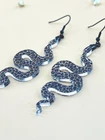 Elevate your style with these unique Snake Earrings, the perfect blend of Celestial and Halloween vibes. Embrace your inner witch with these goth-inspired Snake Lover Earrings. A must-have piece of Gothic jewelry that makes a thoughtful gift for her. Handcrafted for the ultimate witchy look. Lightweight Acrylic Earrings on a Stainless Steel hook. Earring hardware is stainless steel and nickel/lead free. 🌟(Please see item details/highlights/pictures for size information)🌟 Each earring is laser cut from acrylic and assembled by hand in our studio. 🌟Due to variation in the patterns and handmade processes, each earring will vary earring to earring. No two earrings will be identical but will look similar to what is pictured! Each pair of earrings comes on an earring card with silicone backers and packaged in an organza bag. Perfect for gift giving! We currently do not offer more gift-wrapping options. Shipping: All purchases are shipped in a box with tracking so that they arrive safely to you! Currently we only ship to US postal addresses. We have a set standard shipping time of 1-3 business days from the time your order is placed. Everything in our shop is already handmade and ready to ship FAST! Please be aware that unexpected delays can occur, which you will be notified at the time of any such occurrence. Jewelry Care: 🌟Each piece is delicate! Avoid dropping or bending! 🌟Do Not expose to excessive moisture, please remove jewelry before showering, swimming, and sleeping. 🌟Avoid abrasives, perfumes, lotions, excessive heat, chemicals etc. These may deteriorate your jewelry and may damage its appearance. 🌟Clean with the soft cloth we have included in your package (and it is FREE of Charge!) No Returns: Due to hygienic and safety reasons, ALL SALES ARE FINAL. We DO NOT accept returns. In the event you have an issue with your purchase, please feel free to message us on Etsy to discuss any possible resolution.