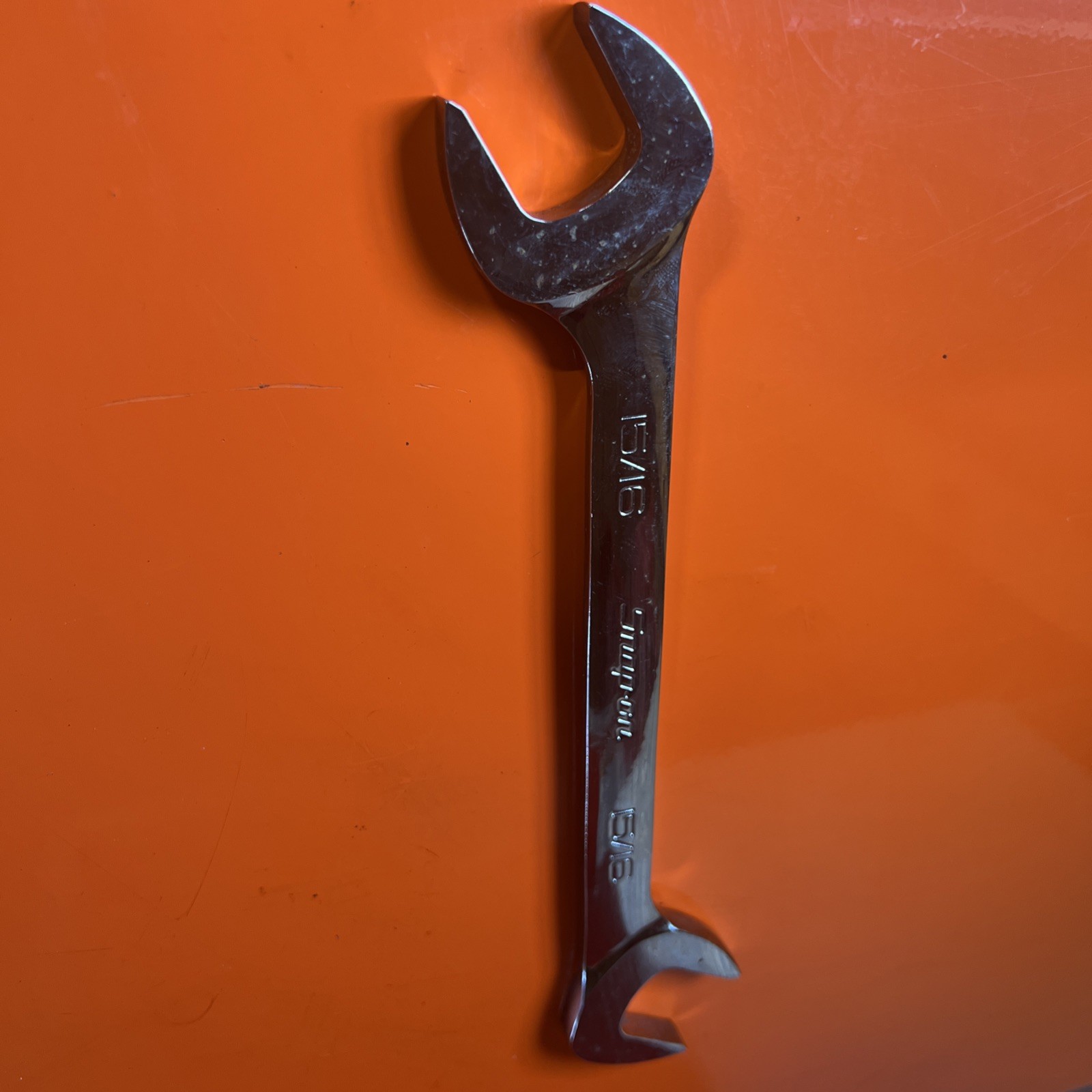 The Snap On VS30B 15/16" SAE Four-Way Angle Head Open-End Wrench is a high-quality hand tool designed for automotive use. Made by the reputable brand Snap-on in the United States, this wrench is a single item that is perfect for tightening and loosening nuts and bolts in a variety of automotive applications. With its SAE measurement system and 15/16 inch size, this open-end wrench is a reliable and durable tool that is essential for any automotive technician or mechanic. slight scratches and surface rust as seen in photos but in good working condition