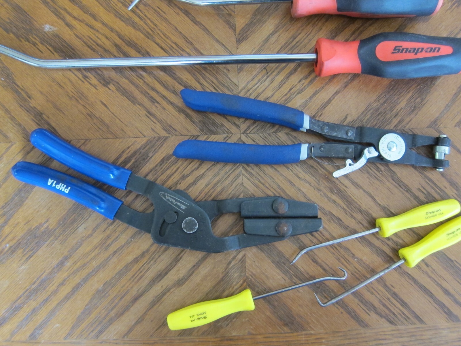 snap on sga1710b, sga173b picks, blue point hose clamp tools hcp10 and php1a, also 3 yellow handle picks all in great condition, usa shipping