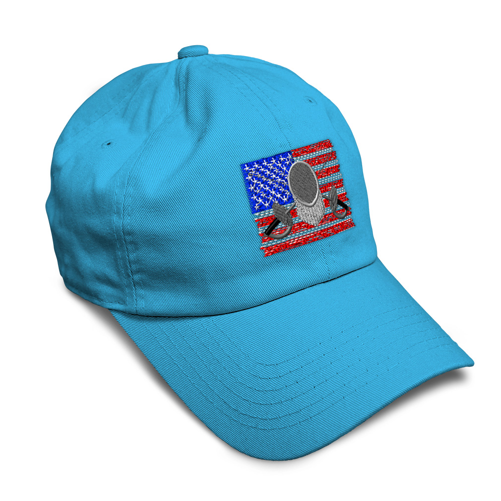 Unisex Unstructured 100% Cotton Baseball Cap for Men & Women Classic never goes out of style! Our baseball caps will come everywhere with you and will take your outfit to the next level. Our caps are available in more than 20 colors, so we are sure you'll find the perfect one. GREAT GIFTS IDEA: Unforgettable and unique, our golf hats men and women are the perfect gift for birthdays, anniversaries, Christmas, Father’s Day, Mother’s Day or any other celebrations. Perfect for someone who is looking for Embroidery hat, Sports hat for women, Fencing dad hat for women, Fencing American Flag Embroidery baseball cap, mens hat womens hat, gifts for wife, Olympic Sports women baseball caps, Sports Events hats for men, Games dad hat, Embroidery gifts for men, Sports gifts for women, Fencing gifts for dad, Fencing American Flag Embroidery apparel, shirt. These men hats and baseball hats for women are suitable for exercise such as running or working out, casual outings to go to the beach, to work, to the club, to the mall or an everyday wear. You can make this mom hat or dad hat one of a kind with our custom option with thousands of designs available to you. Simply add your personalized text and choose among various fonts and colors! Our embroidery will continue to look great after many years, it is carefully made in our lab in Tampa, Florida. BEST CLASSIC SOFT BASEBALL HAT! ** Long-Lasting Materials: Add a classic touch to your outfit with our 100% cotton 6 panels low-profile unstructured baseball hat that provides maximum comfort. Fits men and women! ** METAL BUCKLE CLOSURE: Our hats for women and men feature a solid metal buckle closure in the back letting you easily adjust the size for a perfect fit. ** PRE-CURVED BILL: Our mens hats and womens hats feature a well-made pre-curved bill to protect you from the sun and prevent dazzle. You can now play your favorite sport without being bothered by the sun! ** ANTI-SWEAT BAND: Stay fresh and dry with our golf hat featuring an anti-sweat band. Exercise and play your favorite sports without having sweat running consistently into your eyes anymore! **AMERICAN CUSTOM EMBROIDERY: We take proud on being an American company and we bring you the best of custom and personalized embroidery. Simply select the color of your sun hat, and then customize it with your own text and words. Choose among a wide range of fonts and colors! PAYMENT TERMS