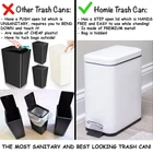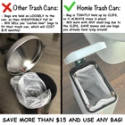 The Best Small Trash Can Ever get tired of trash bags repeatedly falling into a trash can, and constantly having to re-adjust them? We are too! We didn't see a single trash can that held bags fixed in place, so we made one. Enjoy the convenience of a trash can where you don't have to worry about bags falling in! Anti - Bag Slip Clips - Simply clip bags into the inside of the trash can, and they will never fall in. And you get the added bonus that the bag doesn't need to be tucked around the top of the can, meaning that it won't be visible at all when the can is closed. Your trash can will look cleaner than ever! Works With Any Bag - The clips fit with almost any bag you think of to securely hold it in place. This saves you tons of money because you don't have to buy special fitted bags for your trash can anymore! Any bag will do! Soft Close Lid - Use the trash can peacefully with no noise when it closes! The soft close lid gets rid of the constant annoying banging sound of the lid closing you will hear from other trash cans. Easy to Clean - Easily remove the inner plastic liner to clean the trash can without having to worry about damaging the outside. Quality Construction - Make use of the durable steel step and lid for repeated uses without any problems. A great size of 11.5" H x 11.5" L x 5.5" W for the trash can makes it great for small spaces. PATENT PENDING β π¦π’ππ§ πππ’π¦π πππ - This is the quietest trash can you will use with no annoying noises. Gentle lid makes no noise, simple and automatic garbage bin open and closing. β ππ‘π§π πππ π¦πππ£ ππππ£π¦ - No more having to keep fixing your bag because it has fallen into the trash can. Bags never fall into tiny bin, touch-less design, great for any room, office. β πͺπ’π₯ππ¦ πͺππ§π ππ‘π¬ πππ - Save more than $15 on not having to buy custom liner bags to fit your trash can. Use any old cheap bag lying around. Any bag snugly fits the bin and stays hidden inside. β πππ¦π¬ π§π’ πππππ‘ - has ensured this trash can will take no time to clean. Just remove the liner, wash it, and throw it back in without harming the metal. Removable plastic liner simply washed, best mini silver dustbin or wastebasket β π¦π πππ πππ§ππ₯π’π’π π§π₯ππ¦π πππ‘ - Built with durability in mind, this trash can will last you for years. All of the material used a premium grade. Durable pedal and construction, 11.5" H x 11.5" L x 5.5" W size, slim and skinny