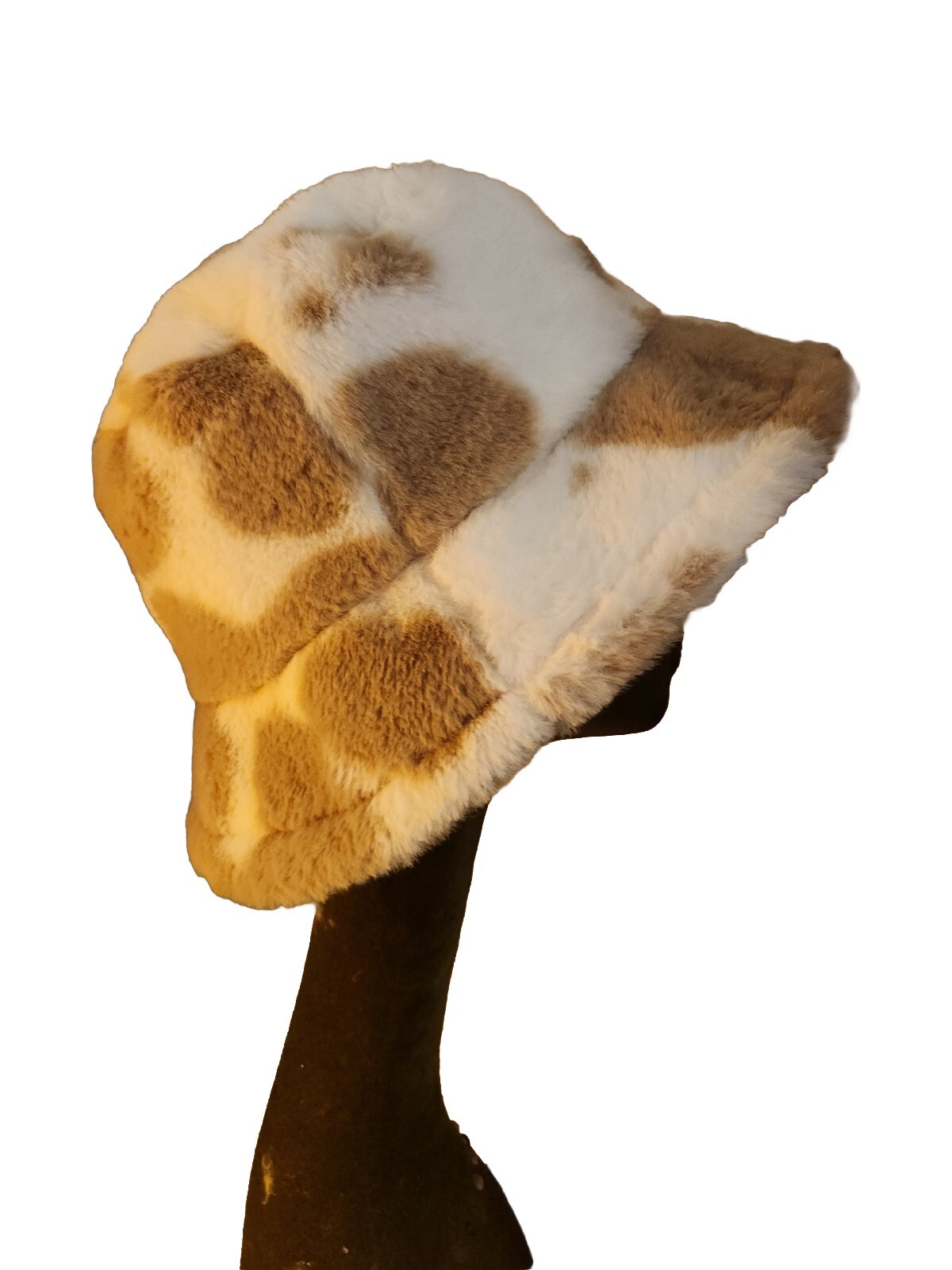 This soft and furry bucket hat in light beige with a playful cow print is a must-have for any fashion-forward woman. The adjustable size ensures a comfortable fit, while the stylish design is perfect for adding a touch of fun to any outfit. Whether you're dressing up or down, this hat is sure to turn heads. Made for women who love to express their individual style, this bucket hat is a versatile accessory that can be worn all year round. The beige color and cow print are perfect for adding a pop of color to any outfit, while the furry texture adds a touch of luxury. Add this hat to your collection today and elevate your fashion game.
