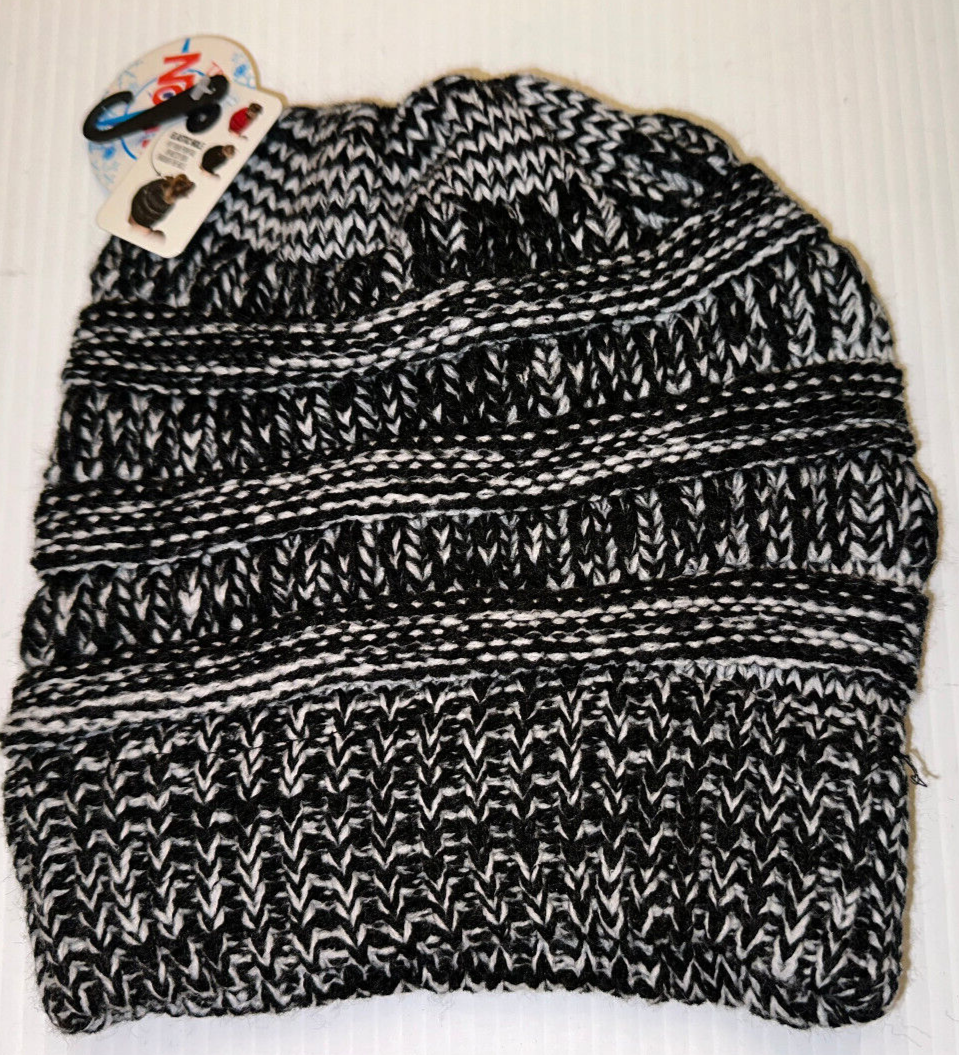 Stay stylish and comfortable during any season with this soft and stretchy cable knit beanie from HaT. Perfect for travel, activewear, casual outings, and workwear, this black and white beanie is a versatile addition to any wardrobe. The beanie features a ponytail opening, making it easy to wear with this messy bun cap. Made from acrylic material, this beanie is perfect for winter, fall, and spring seasons. The stretchy fabric type ensures a comfortable fit for all head sizes. The nature-inspired theme adds a touch of elegance to this simple accessory. Get yours today and stay cozy and fashionable all year long.