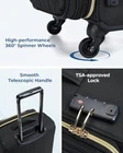 Return Policy Fast Delivery Trusted seller Softside Expandable Luggage Airline Approved with Spinner Wheels, 20 Inch Carry On Luggage 22x14x9 with TSA Lock, Quilted Rolling Suitcases for Women, Black Product Description Easy Access at All Times: 20 inch carry on luggage has a 15.6" computer compartment and the computer compartment has securing straps to keep your computer from shaking. Luggage with spinner wheels has 2 front pockets for quick storage of boarding passes, magazines, books and more. Rolling suitcase has 2 convenient side pockets for storing water bottles or umbrellas. Sturdy carry handles on the top and sides of the suitcase offer a variety of travel-carrying options. Upgraded 11% Bottom Expandable Design: The softsided expandable luggage unzips to expand by 2 inches at the bottom, providing 45L and an additional 5L of expanded capacity. The interior of the carry on suitcase has huge main compartments with a buckle compression system to keep your travel items organized. The interior of the suitcase with wheels comes with a zippered utility pocket for small items. Travel luggage expands to a massive 50L capacity to help you hold all your travel essentials. Airline-Approved Boarding Size: Carry on luggage 22x14x9 airline approved meets most airline requirements for overhead compartments. Suitcases with wheels are suitable for 3-5 day air, train, or road trips. Carry-on luggage is upgraded with a double-ended zipper and side-mounted TSA-approved lock for added security and to ensure smooth airline baggage screening. The luggage for travel measures 21x14x9 inches with wheels and weighs only 7.83 pounds. Getting Around Is Easy: The luggage carry on spinner wheels comes with an ergonomic Grade 3 aluminum tubular handle and is available in a variety of heights while minimizing wobble for your comfort. With 360° swivel wheels, suitcase for women is quiet and durable, making it easy to navigate airports, train platforms, sidewalks, and more. The Womens luggage made of quilted durable polyester fabric offers a sturdier base that allows it to glide easily, even when fully loaded. Premium Service And : will back each piece of tsa approved carry on luggage with a 5-year manufacturer's warranty. Before shipment, soft sided luggage with spinner wheels undergoes thousands of rigorous tests to ensure that our suitcases with wheels carry on size meet strict standards and can withstand any journey. If t are any quality problems, please contact us for a timely and satisfactory answer! Shipping Returns Payment Shipping Shipping is FREE to all addresses other than APO/PO boxes in the lower 48 states. All our stock ships from US-based warehouses. Shipped via USPS or UPS (depending on location and package weight) Unless stated otherwise, all orders will ship within 24-72 hours of your payment being processed. Check our feedback to see the great reviews of FAST shipping we offer. Returns Seller does not accept returns Payment We currently accept payment via eBay managed payments only. Once payment is cleared, we will dispatch your shipment within 1-3 business days. Please refer to the "Shipping" tab for more information regarding shipping speed to your destination.