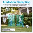 Features: --Wireless solar charging and easy installation: With built-in solar panels and outdoor wireless security cameras, you can truly get rid of tangled wires. Simply place the outdoor camera under solar energy to charge, and you can achieve 365 days of continuous use of solar energy. Simply press the power button and follow the in app instructions to easily connect your security camera to your 2.4GHz Wi Fi (5GHz Wi Fi is not supported). It only takes a few minutes to install the outdoor wireless camera on the wall. --2K crystal image and color night vision: Compared to 1080P image, the outdoor wireless camera provides clearer images at 2K resolution, reproducing realistic images, allowing you to view every detail of the outdoor area and prevent threats or intruders. At night, the outdoor spotlight- of the security camera will automatically turn on, providing you with clear images even in pitch black. When full-color images are not needed, you can also choose infrared night vision. AI human detection alarm and intelligent spotlight-: The outdoor wireless security camera with PIR motion sensor and automatic spotlight- provides comprehensive security and property protection for you and your family. When the outdoor wireless camera detects an unexpected visitor approaching your house, it will an audible alarm and automatically turn on the night spotlight- to scare the intruder and send you instant notifications, so you can stay at ease even if you are not at home. --SD card and cloud storage (optional): Outdoor security cameras support 24/7 recording of sports videos to cards (up to 128GB, not included) and cloud storage services (optional). Attention: Solar outdoor wireless cameras do not support continuous recording or automatic tracking. In addition, it is compatible with Alexa or Home, so you can have Alexa or Assistant show you any location where the WiFi outdoor wireless camera is recording. --Bidirectional audio, multi-user sharing, and 24/7 protection: The outdoor home security camera is equipped with a phone and speaker, ensuring clear and real-time remote communication with family or friends, and even warning intruders at the door. You can remotely share your camera with your family from anywhere, and they can also access the solar powered security camera with you simultaneously. It is waterproof and can withstand any adverse weather conditions. Package: Camera * 1 Bracket * 1 Quick Installation Guide * 1 Certificate of conformity * 1 Punching expansion rubber plug screw package * 2 (rubber plug * 4 screws * 4) Size: KA3.5 × 25mm screws+7 × 25mm white screw rubber plug Punching sticker * 1 TyPe-c to TYPE-A power cord (straight head 1 meter) * 1 24-hour surveillance video sticker