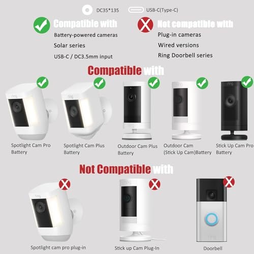 Return Policy Fast Delivery Trusted seller Solar Panel for Ring Camera, Compatible with Ring Stick Up Cam (2nd/3rd Gen) & Pro, Spotlight Cam Plus/Pro (Battery), 7W Solar Charger with USB-C to 3.5mm Adapter, 8.8ft Cable & 360° Mount Product Description Wide Compatibility: Compatible with Ring Stick Up Cam (2nd Gen, 3rd Gen), Stick Up Cam Pro, and Ring Spotlight Cam Plus/Pro (Battery). Also supports most 5V USB-C rechargeable security cameras using the included USB-C to 3.5x1.35mm adapter. (Not compatible with Ring Doorbell or hardwired models.) 7W High-Efficiency Solar Panel: Harness the power of the sun to keep your Ring battery cameras charged continuously. Built with a high-conversion 7W monocrystalline solar panel, it ensures stable, efficient energy supply while reducing the need for manual recharging or battery replacements. IP66 Weatherproof Design: Designed for outdoor use, the panel is rated IP66 waterproof and performs reliably in harsh conditions, including rain, snow, heat, and dust. Operating temperature ranges from -20°C to 70°C, making it ideal for year-round camera power. Flexible Mounting with Extra-Long Cable: Includes a 360° adjustable mounting bracket and an 8.8ft (2.7m) weather-resistant charging cable, giving you full flexibility to position the solar panel in the optimal direction for sunlight—whether on a wall, fence, or rooftop. Easy Installation: No special tools or wiring required. Just drill three holes, secure the mount with the included screws, and connect the solar panel to your compatible camera. Set up your solar-powered Ring camera system in minutes. Shipping Returns Payment Shipping Shipping is FREE to all addresses other than APO/PO boxes in the lower 48 states. All our stock ships from US-based warehouses. Shipped via USPS or UPS (depending on location and package weight) Unless stated otherwise, all orders will ship within 24-72 hours of your payment being processed. Check our feedback to see the great reviews of FAST shipping we offer. Returns Seller does not accept returns Payment We currently accept payment via eBay managed payments only. Once payment is cleared, we will dispatch your shipment within 1-3 business days. Please refer to the "Shipping" tab for more information regarding shipping speed to your destination.