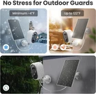 100% Wireless & Solar Powered: This wireless outdoor camera is equipped with high-capacity rechargeable batteries that can be fully charged via the included solar panel, ensuring continuous power without the need for regular battery changes. Enjoy uninterrupted, long-term monitoring without hassle. 2K Resolution: Experience superior clarity with 2K (3MP) resolution technology, which enhances visual quality and detail. Unlike blurry, pixelated images, this camera delivers sharp, clear video for optimal home security. Automatic Human Tracking & Smart Alerts: When human motion is detected, the camera automatically tracks the movement and records the event in detail. The built-in floodlight and siren activate to deter unwanted visitors, and instant notifications are sent to your phone to keep you informed in real-time. Night Vision: The integrated spotlight delivers bright, adjustable lighting that enhances security by illuminating dark areas such as pathways, driveways, or backyards. This feature ensures better visibility at night, helping to detect any movement and improving overall surveillance coverage. Easy Setup & SD/Cloud Storage: Enjoy a seamless setup process with a reliable 2.4GHz WiFi connection (note: 5GHz WiFi is not supported, but the camera will function like 2.4GHz in areas with 5G coverage). Access live video from anywhere, anytime through the mobile app. Choose between local SD card storage (up to 128GB, SD card not included) or our stable and affordable cloud storage service. The cloud storage option ensures your footage is securely backed up, easily accessible, and protected from data loss, giving you peace of mind at all times. Product Description 1 Color Night Vision 2 2-Way Talk 3 2K HD