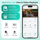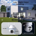 [2K HD Color Night Vision & 360°Rotating] This outdoor security camera wireless offers a 360° panoramic view, allowing horizontal rotation of 336° and vertical rotation of 90° to cover a larger area. Equipped with 3MP color night vision, the solar camera outdoor wireless design is enhanced with two white lights and an infrared sensor that extends up to 33 feet, so even in the dark, you can rely on it to capture clear images and videos, making it one of the outside cameras for home security. [Solar Panel Powered & 100% Wireless] Solar security camera is equipped with a solar panel, ensuring 365 days of uninterrupted protection. Built-in enhanced antenna provides stable 2.4GHz WiFi connectivity with improved penetration and a wider range. Advanced Wi-Fi 6 technology to provide enhanced stability and faster video transmission, ensuring smooth and uninterrupted surveillance footage. (Note: 5G Wi-Fi is not supported.) [Advanced Motion Detection & Real-Time Alerts] This wireless solar powered security camera includes the latest artificial smart PIR sensor, capable of identifying between humans, pets, vehicles and packages. Upon motion detection, it records, uploads and sends push notifications to the app, keeping you informed at all times. Additionally, the wireless cameras for home security come with manual or automatic spotlights and a siren to help deter unwanted visitors. [Two-Way Audio & Multi-User Sharing] Equipped with two-way talk, this 360 outdoor security camera wireless allows you communicate with others in real-time through your mobile app. Remotely deter intruders, screen unexpected visitors or connect directly with family and friends. Simply scan the QR code to share access with family or friends, enhancing monitoring and safety through these cameras for home security. [Reliable Storage Options & IP65] Store recorded footage on an SD card or cloud storage. It supports up to 128GB of TF card storage, allowing the camera to record and upload videos even without an internet connection. Data from the surveillance camera to the cloud is securely encrypted, ensuring only you have access with this premium security system. With an IP65 waterproof rating, the wifi camera outdoor wireless can withstand all weather conditions, ensuring uninterrupted operation and protecting your home. (Free 7-day rolling cloud storage without subscription) Product Description 1 360° Full view 2 4X Zoom & Multi-Share 3 IP65 waterproof 1 3MP Color Vision 2 Multiple Alarms 1 Two-Way Audio 2 Al Motion Detection 1 Bluetooth connection 2 Cloud Storage