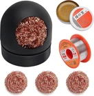 【Soldering iron tip cleaner 】-Better cleaning effect than traditional sponges. No water is needed, and the temperature of the soldering iron tip will not be lowered when cleaning the soldering iron tip, also no solder ball breaks out than conventional tip tins, which improves work efficiency. 【Material】 The solder iron cleaner with hemispherical design is made of stainless steel, which is sturdy and durable. The soldering iron tip cleaning wire ball is made of brass, which helps to remove oxides and excess solder and prolong the service life of the soldering iron tip. 【Solder Rosin Wire Core Tin】WARNING: This product can expose you to chemicals including lead, which is known to the State of California to cause cancer and birth defects or other reproductive harm. For more information go to www.P65Warnings.ca.gov. 【Solder Rosin Flux Paste】Rosin and lead-free, non-toxic, non-irritating odor, helps eliminate the oxidation of the soldering iron tip, does not need to be cleaned, has high bonding strength, and makes the solder more durable 【Package Include】1 * Soldering iron cleaner , 1 * Tin lead solder wire (1.76oz/50g), 1 * Solder flux tin, 3 * Soldering iron cleaner copper wire balls. Product Description Perfect Design - The spherical shell and the hemispherical shell are designed to cooperate Brass- High quality, Reduce the accumulation of oxides Solder iron tip cleaner - Stainless steel shell, sturdy and durable Solder Rosin Flux Paste - Strong welding ability, high joint strength Solder Core Wire - Fast welding speed, less residue Suitable for soldering circuit boards of electronic products