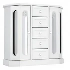 THE ROUND RICH HIGH-GRADE JEWELRY BOX:High-end natural hardwood structure, Anti-Tarnishing velvet lining, exquisite hardware decoration, harmonious color match, highlighting taste and nobility. Packaged in a beautiful GIFT BOX, a gift that women will not refuse! External design:Double necklace doors and beautiful pearled door handles and drawer handles provide timeless style and ingenious convenience. Cabinet Type and large storage space with separate open doors on both sides. There are separate 8-hook merry-go-round horses and big mirrors. This multi-functional jewellery box is not only exquisite, but also luxurious. Internal Multifunctional Design:5 removable square drawer on the middle, large space storage (It can store necklaces, bracelets, earrings, earpins, hairpins, watches, rings and other jewellery accessories). Velvet interior in drawer. Size:Jewellery box 13.5"x5"x13.2" (L*W*H); Drawer Internal Space 4.3"x3.6"x1.65" (L*W*H); Mirror Size:2.9"x9". We provide 24-hour customer service online. If you are not satisfied, you can get a refund within 30 days. Good customer service and product stable quality are always our highest requirements for ourselves.