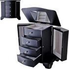 ELEGANT WOODEN JEWELRY BOX: This morden classic wooden jewelry organizer box is made of wood and finished with JAVA BLACK, Item size 9 3/4" x 5 1/2" x 9 1/4" (L*W*H) INTERIOR: Hand lined with a plush ivory sueded fabric cloth-covered inside which keeps your jewelry well against dust, scratches, damages. STORE YOUR LIFESTYLE: The all-in-one jewelry box provides functional space and keeps all of your jewelry in mint condition. Flip the lid, and there's a large mirror on the back of it. Below the top compartment there are 3 drawers which has velvet linen and big space to let you keep jewelry easily. The sides feature 2 necklace doors each with 3 hooks on the inside. JEWELRY BOX FOR GIFT: Every one of our wooden jewelry boxes is packed in our color gift box with a carton box for maximum protection and safety. What You Get: Our factory has been making American jewelry cases for a few decades with a deep understanding of each product. We are committed to providing high quality and affordable jewelry boxes that make everyone happy.
