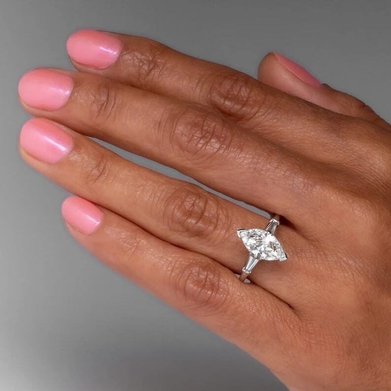 Ring Details ✨ Diamond Shape: Marquise Stone: Cubic Zirconia Metal: 925 Sterling Silver All Ring Sizes Available (US Size 4 to 12) You can place an order according to your preferred ring size. If you need a custom size, simply send us a message with your requirements, and we will have it made for you. Order & Delivery Information Your jewelry will be dispatched within 4 days of placing the order. After dispatch, it will be delivered within 7 days. For any inquiries or special requests, feel free to contact us! Best regards,