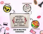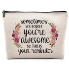 Sometimes You Forget You're Awesome so This is Your Reminder Makeup Cosmetic Bag,Thank You Gifts for Women Linen Makeup Travel Toiletry Bag,Cheer Up Cosmetic Bag Gifts for Women Wife Best Friend Product Details Product Dimensions: 10 x 7.5 x 0.3 inches Item Weight: 1.76 ounces Manufacturer: Dwept Country of Origin: China Item model number: 067 Organize Your Beauty Essentials: Keep all your cosmetics in one convenient place with this makeup bag, perfect for on-the-go makeup and touch-ups. Easy Access: With a size of 7.510 inches, this bag is perfectly sized to fit all your makeup essentials while still being portable enough to take everywhere with you. High-Quality Linen Material: Made of linen material, this bag is both sturdy and easy to clean, ensuring longevity and practicality for everyday use. Double-sided printing: The bag are designed with double-sided design to become a fashionable accessory and complete your look. Perfect Gift Idea: Can be used as a makeup bag, travel accessories, grocery storage bag or case bag for daily use. Whether it's for a birthday, anniversary, or any other special occasion, this cosmetic bag makes a thoughtful and practical gift for any beauty lover in your life. This makeup bag offers maximum convenience, and ours is a must-have for anyone who likes to stay organized.