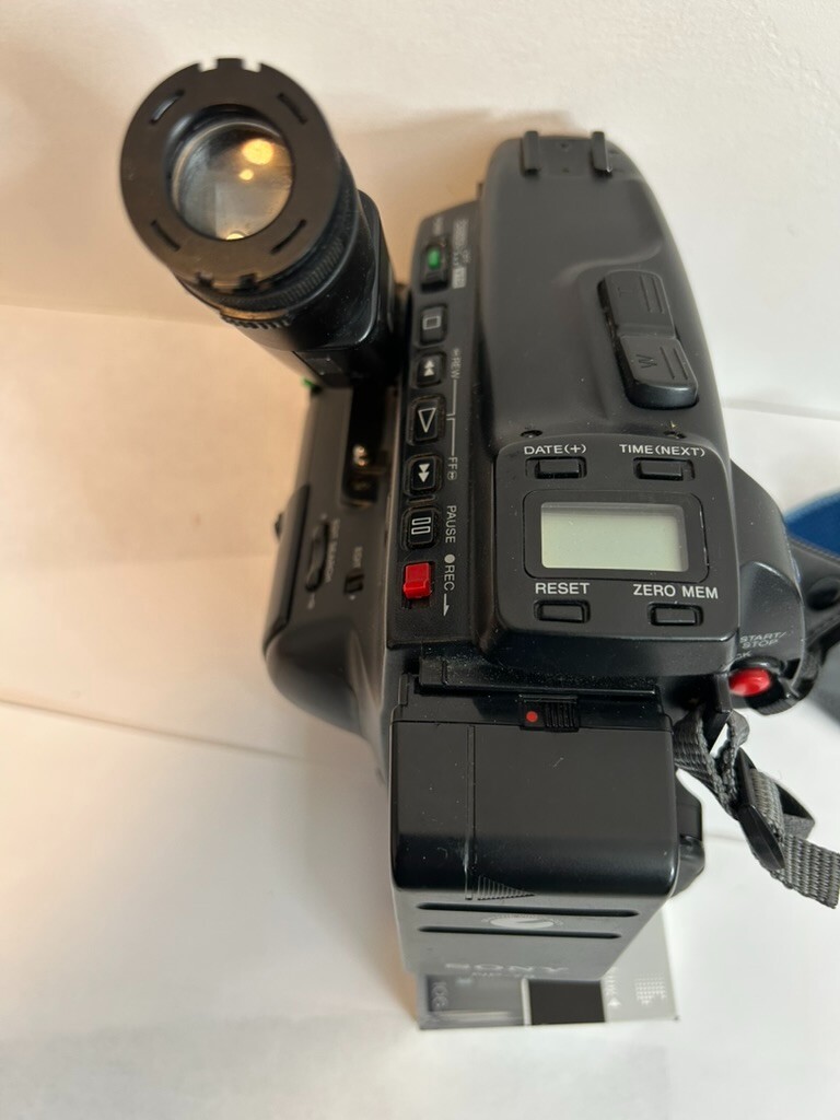The Sony Handycam Video 8b 8x F7-56 is a high-definition camcorder with an 8x optical zoom, designed for handheld use. This black camcorder features a built-in microphone and uses Video8 media format for recording. Perfect for capturing memories and moments in stunning detail, this Sony camcorder offers quality and convenience in one sleek design.with bag. camerasold as it is..
