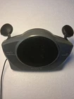 The Sony SRS-T1 Active Speaker System is a versatile and portable audio solution that works & sounds great! With a sleek gray design and a 2.1 channel system configuration, this foldable tweeker speaker system is perfect for on-the-go use. The clip-on feature and 3.5mm jack audio inputs make it easy to connect to various devices, while the wired connectivity ensures a stable connection to your phone or tablet. This Sony speaker system delivers 3W RMS power from 4 AA batteries or can be plugged into a standard 110V outlet (cord and plug can be purchased separately). On the reverse side, with the quick press of a button, the stand folds out to allow perfect placement with this stereo sound system.