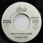 Artist : NATALIE COLE Songs : KEEP IT ON THE OUTSIDE / KEEP IT ON THE OUTSIDE Condition of Vinyl: VG++ to NM! Condition of Label/Sleeve: See picture Shipping Costs Location Shipping Cost for 1st Item Cost Per Additional Items U.S. $5 for 45 Free! for LP 45-FREE! LP- Free! Canada $12 for 45 $19 for LP 45-$3 each LP-$6 each Worldwide $12 for 45 $19 for LP 45-$3 each LP $6 each We gladly ship anywhere in the world! Please let us know if you have any questions...Thanks! Powered by SixBit's eCommerce Solution