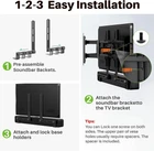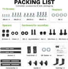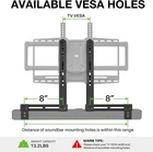 Soundbar Mount Sound Bar TV Mount for Mounting Above or Under TV, Sound Bar Mount Up to lbs, Two Removable and Lockable Hooks for Back or Bottom Holes 【COMPATIBILITY】Soundbar Mount fits most sound bars with Back /Bottom Holes, weight capacity up to Compatible with most TVs with horizontal VESA at 75-600mm. 【FEATURES】Soundbar tv mount easily connect and hang soundbar on the above or under TV wall mount. Two flexible arms can be adjusted in height and hanging hook can be slide left/right for centering purposes. 【LOCKABLE HOOKS】Two movable solid base holders are perfectly to secure your soundbars with holes on the back or bottom. Very sturdy once locked in place avoid soundbar swings and slides. 【EASY INSTALLATION】1. Pre-assemble soundbar Backets. 2. Attach the soundbar brackets to the TV brackets. (Tips: You can lock one screw on each side. The top pair of holes generally require use of a spacer.) 3. Attach and lock base holders without need to drill holes in the wall. 【GOOD SERVICE】10- friendly US-Based customer service. Not sure this mount will work with your soundbar? Our engineers will simulate the installation for you. Please let us know the following information: 1. Complete TV models. 2. Complete soundbar models. 3. The distance between the two mounting holes on the bottom or back of the soundbar.