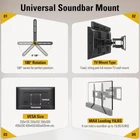 Soundbar Mount Bracket for Mounting Above or Under TV Fits Most of Sound Bars Up to 15 Lbs, with Detachable Long Extension Plates MD5420 Description: Universal Design - Our soundbar mounting bracket can hold a soundbar up to 15LBS/6.8KG. It fits most of SAMSUNG, SONY, VIZIO, BOSE, YAMAHA Sound Bars. Compatible with wall mounts (fixed, tilt, full-motion mount), TV VESA up to 600x400mm. (For Sonos Beam, please refer to soundbar mount MD5426) Multi-Style Assembly - The detachable long extension plates are adjustable, allowing 180 degrees swivel for more mounting flexibility than fixed brackets sold on the market. Easy Installation - Easily secures the soundbar above or below the TV. The teeth on the arms connection lock the soundbar firmly in place, avoiding leaving screw holes in the wall and making the installation a breeze. Necessary Hardware Included - Come with decent instruction and necessary hardware. We provide the L-shaped bracket for soundbar with mounting holes in the bottom.
