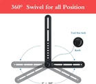 Sound bar mount is intended for use with the maximum weight of 10 kg(22lbs).Use with heavier than the maximum weights indicated may result in instability causing possible injury. Adjust the soundbar mounts difference distance from the TV to soundbar and brackets with an extender bar will provide you the best position. Compatible with wall mounts (fixed, tilt, full-motion mount). TV mounting holes compliant: 200x100, 200x200, 300x300, 400x200, 400x300,400x400, 600x400mm. Heavy barkects can support good quality.Tool free knob secures the soundbar above or below the TV. Dynavsita soundbar mount is easy to install, we provide all hardware kits and detail instruction manual. Installation: Part1:Adjust the Soundbar Mounts to Your Sound bar a)For wide moungting hole spacing b)For narrow mounting hole specing c)For closer hole spacing,you might need to switch for shorter arm d)For further holr spacing, you might need to combine and assemble he extension arms Part2:Attach the Brackets to Your Sound Bar a)Screw Hole b)Key Hole c)"L"Shape Hanger Mount Part3:Attaching the Sound Bar Mount to the TV Mount a)Disassemble your TV from the mount b)Attach the assembled sound bar and brackets unit to your TV c)Hang the whole assembled unit to the mount Note: When using with low profile TV mounts, you may need to remove the tightening knob and attach the lock nut using the wrench if there is not enough clearance. Make sure the safety or the safety deviice is fully tighten after mounted. The sounfbar can be mounted on top of the TV if the TV mount is tated to hold the weight of the TV, soundbar mount and soundbar.