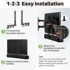 Universal Soundbar Mount, 【COMPATIBILITY】Soundbar Mount fits most sound bars with Back /Bottom Holes, weight capacity up to 13.2lbs. with most TVs with horizontal VESA at 75-600mm. 【FEATURES】Soundbar tv mount easily connect and hang soundbar on the above or under TV wall mount. flexible arms can be adjusted in height and hanging hook can be slide left/right for centering purposes. 【LOCKABLE HOOKS】movable solid base holders are perfectly to secure your soundbars with holes on the back or bottom. Very sturdy once locked in place avoid soundbar swings and slides. 【EASY INSTALLATION】1. Pre-assemble soundbar Backets. 2. Attach the soundbar brackets to the TV brackets. (Tips: You can lock screw on each side. The top pair of holes generally require use of a spacer.) 3. Attach and lock base holders without need to drill holes in the wall. 【GOOD SERVICE】10-year friendly US-Based . Not sure this mount will work with your soundbar? Our engineers will simulate the installation for you. Please let us know the following information: 1. Complete TV models. 2. Complete soundbar models. 3. The distance between the mounting holes on the bottom or back of the soundbar.