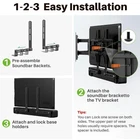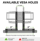 COMPATIBILITY: Soundbar Mount fits most sound bars with back /Bottom Holes, weight capacity up to 13.2 lbs. Compatible with most TVs with horizontal VESA at 75-600 mm. FEATURES: Soundbar tv mount easily connects and hangs soundbar on the above or under TV wall mount. Two flexible arms can be adjusted in height, and hanging hooks can be slide left/right for centering purposes. LOCKABLE HOOKS: Two movable solid base holders are perfectly to secure your soundbars with holes on the back or bottom. Very sturdy once locked in place, avoid soundbar swings and slides. EASY INSTALLATION: 1. Pre-assemble soundbar Backets. 2. Attach the soundbar brackets to the TV brackets. (Tips: You can lock one screw on each side. The top pair of holes generally require the use of a spacer.) 3. Attach and lock base holders without the need to drill holes in the wall.
