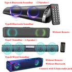 Product Description Computer Soundbar NOTE:TypeD IS Wired Soundbar ,NO REMOTE TypeA Bluetooth Soundbar Description: Color: Black Size: 540*58*78.5mm Material: Plastic + Metal + Electronic Components Weight: 780g Charging Cable Length:100cm Optical Cable Length:100cm RCA Cable Length:100cm 3.5mm AUX Cable Length:100cm Notice: Some smart TVs support external speakers, home theater and other equipment, but after the connection is successful, you need to set up the TV operation method: remote control - project - sound - OK - speaker settings - OK - external speakers. Packing List: 1 x Bluetooth Speaker 1 x USB Charging Cable 1 x Optical Cable 1 x RCA Cable 1 x 3.5mm AUX Cable 1 x User Manual -------------------------------------------------------------------------------------------------- TypeB Bluetooth Soundbar Product specifications: Type: Speaker Rated power: 2 x 3w Material: ABS Frequency response: 60Hz-15KHz Signal to noise ratio: ≥75dB Size: 28*4.7*6 Input Current:600mA Auidio Input:BlueT/TF Card Package Included: 1×Computer speaker -------------------------------------------------------------------------------------------------- TypeC Wired Soundbar Product specifications: Type: Speaker Rated power: 2 x 3w Material: ABS Frequency response: 60Hz-15KHz Signal to noise ratio: ≥75dB Size: 28*4.7*6 Input Current:600mA Audio Input: 3.5mm audio jack, powered by USB. Package Included: 1×Computer speaker -------------------------------------------------------------------------------------------------- TypeD Bluetooth Soundbar Product Specification: Color: Black Size: 560 x 62 x 62 mm / 22.05 x 2.44 x 2.44 inch Bluetooth Version: V5.0 Speaker Unit : 5W*4 Bluetooth Distance: 10M. Battery Capacity: 2000mAh Nominal Voltage: DC 5V Music Playing Time: About 3 hours Standby Time: 240 hours 1A Charging Time: About 2 hours Audio Input: Bluetooth/RCA/3.5mm Aux/TF card/USB Accessories: 1 x Charging Cable,1 x 3.5MM-RCA Cable, 1 x Remote Control, 1 x User Manual Support :TV/PC/Phone/Tablet/Laptop/MP3/MP4/DVD player/TV Box Audio and other Support Bluetooth Device Package Includes: 1 x Speaker 1 x Charging Cable 1 x 3.5MM RCA 1 x User Manual 1 x Remote Control -------------------------------------------------------------------------------------------------- TypeE Soundbar Color: Black Size: 550*55*53mm Material: Plastic SNR: ±80db Battery:3.7V/2000mA version: V4.1 distance:8-10m Charging time: 2-3hours Standby time: 240 hours Charging plug: micro USB Soundbar power: 4Ω 5W x 4 Transmission power: 1.49mW Storage temperature:-10C-40℃ Transmission frequency: 2.4GHz Charging voltage: DC 5V/ 1A-2A TF card: support 32G (not included) profiles supported: A2DP, AVRCP, HSP and HF Mode: mode, 3.5mm line mode, FM mode, TF card mode, TV mode Package Included: 1 x Speaker 1 x Charging Cable 1 x RCA Line 1 x Remote Control 1 x Manual About Us Payment Shipping Terms Contact Us 1.We are honest eBay sellers. 2.We offer best price products to worldwide. Office time: Monday to Saturday, CST: 9:30-18:30 1. We ONLY accept PayPal. 2.Payment must be received within 7 days after winning the item. To claim back the Final Value Fee from eBay, an UPI (Unpaid Item Case) will be filed automatically if buyers fail to make the payment in 7 days after item ends. 3.If you have any problem with the payment after bidding, please let us know within 24h via eBay message. Thank you! 1. USA Stock, we ship from USA . 2. All packages will be shipped within 1-2 business day . 3. We will provide a tracking number. 4. Please note that there are certain circumstances that we unfortunately can not have control i.e. weather condition, delay by post office, Sundays, National Holidays, etc. 5. We don't arrange shipment on weekends. We appreciate your great understanding. 1. Free 30 day returns. We accept return and exchange. 2. Please read the detail of listing before you purchase it. If you have any problem with the listing, feel free to contact us firstly. 3. Returned item must be in brand-new, un-used, undamaged and re-sellable condition, including original packaging and complete accessories that came with the item (with all tags and labels attached). If the item is returned damaged, or has been opened or used, we may issue a partial refund in accordance to its condition and the issue. Returned item will be refused if it contains any scratches, dirt, or sign of usage. 4.All the items are double checked before shipment, If item is damaged, defective or missing components upon arrival, please provide us photos of the damaged package or defective item, we will respond you within 24 hours and resolve your issue asap. 1.Please contact us via eBay message. 2.Since you and us may located in the different time zones, please allow us to respond you within 24 hours on office time. we will respond you within 48 hours on holidays. 3.We are doing our best to offer you a better shopping impression on eBay. If you have any issue about the transaction, feel free to contact us before opening eBay case, PayPal case and leaving Neutral feedback or Negative feedback, we will resolve your issue properly. About Us 1.We are honest eBay sellers. 2.We offer best price products to worldwide. Office time: Monday to Saturday, CST: 9:30-18:30 Payment 1. We ONLY accept PayPal. 2.Payment must be received within 7 days after winning the item. To claim back the Final Value Fee from eBay, an UPI (Unpaid Item Case) will be filed automatically if buyers fail to make the payment in 7 days after item ends. 3.If you have any problem with the payment after bidding, please let us know within 24h via eBay message. Thank you! Shipping 1. USA Stock, we ship from USA . 2. All packages will be shipped within 1-2 business day . 3. We will provide a tracking number. 4. Please note that there are certain circumstances that we unfortunately can not have control i.e. weather condition, delay by post office, Sundays, National Holidays, etc. 5. We don't arrange shipment on weekends. We appreciat