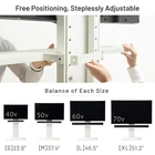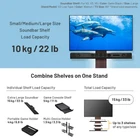 【OPTIMAL BALANCE】Enhance your viewing experience and enjoy realistic sound with your soundbar or speakers mounted directly on your TV stand. 【COMPATIBILITY】This steel floating entertainment shelf is an accessory for brand Japanese TV stands. It is compatible with V2, V2 CASTER, V3, and V5 models of universal -leaning TV stands. 【SIZE】95 cm W x 19 cm D x 4.5 cm H (37.4" W x 7.5" D x 1.8" H) ; Thickness 2.6 cm (1"); Weight 3 kg (6.6 lb) 【ADJUSTABLE】This free-positioning, steplessly-adjustable sound bar or media shelf presses into place and can be installed at any height along the panel of the stand. With no visible screws/holes, it maintains the clean and beautiful appearance of this sleek TV stand. 【CONVENIENCE】Cords and cables pass through the back of the stand for a clean and beautiful appearance from the front. This dedicated soundbar shelf can be installed under the TV even after the TV is in place. When used alone, the maximum load capacity is 10 kg (22 lb). It can also be used in combination with up to 2 other shelves with a shared load capacity of 15 kg /33 lb. (Only use a maximum of 2 shelves when installing a Box Shelf)