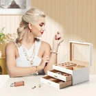Souroyea 3 Layer Jewelry Box, Jewelry Boxes & Organizers, Jewelry Holder Organizer With Glass Lid, Jewelry Organizer for Big and Small Jewelry, Earring Organizer, 2 Drawers Jewelry Boxes for Women Product Details Color: White Brand: Souroyea Material: Leather Style: Modern Special Feature: Jewelry Organizer, Dustproof, Durable Recommended Uses For Product: Necklace, Bracelet, Ring, Watch, Earring, Bangle Product Dimensions: 10.8"D x 7.8"W x 7"H Target Audience: Women, Girls Shape: Rectangular Occasion: Wedding, Anniversa, Birthday, Valentine's Day Item Weight: 3.73 Pounds Item Dimensions D x W x H: 10.8"D x 7.8"W x 7"H Manufacturer: Souroyea UPC: 739944332518 Brand Name: Souroyea Recommended Uses For Product: Necklace, Bracelet, Ring, Watch, Earring, Bangle Target Audience: Women, Girls Number of Compartments: 4 Number of Drawers: 2 Jewelry Storage Type: Jewelry Box Special Features: Jewelry Organizer, Dustproof, Durable Shape: Rectangular Occasion: Wedding, Anniversa, Birthday, Valentine's Day Style: Modern Color: White Inner Material: Metal Material: Leather Jewelry Boxes & Organizers Put all your jewlery organizer in this large jewelry box. Its a jewelry organizer box that combines earring holder organizer and bracelet holder, suitable for placing on the dressing table in the bedroom or cloakroom. 3-Layer Jewelry Holder Organizer Box Multifunctional white jewelry box, with the top layer small jewelry box storing commonly used jewelry such as earrings, rings, necklaces, and bracelets. The bottom 2 jewelry drawer organizer can store large jewelry, as well as watches and sunglasses. Clear Glass Lid You can easily and quickly choose the jewelry you want to match from this large jewelry box organizer, and protect them from dust. This is perfect jewelry storage organizer about women and girls. They must will be fall in love it . Luxury And Durable Elegant white colors, shiny metal handles,neat stitching make this jewelry organizers beautiful, soft velvet lining protect the jewelry from scratches. The outer packaging is made of leather material, which is sturdy, waterproof, and moisture-proof. The jewelry organizer drawer protect your jewelry does not deform. Perfect Gift IdeasThis jewellery organizer for women the perfect gift box . It can be used as a Valentine's Day gifts, birthday gifts, anniversary gifts, or Christmas gifts to give your loved one a surprise! Alternatively, let yourself enjoy this novel jewellery box - you deserve it!