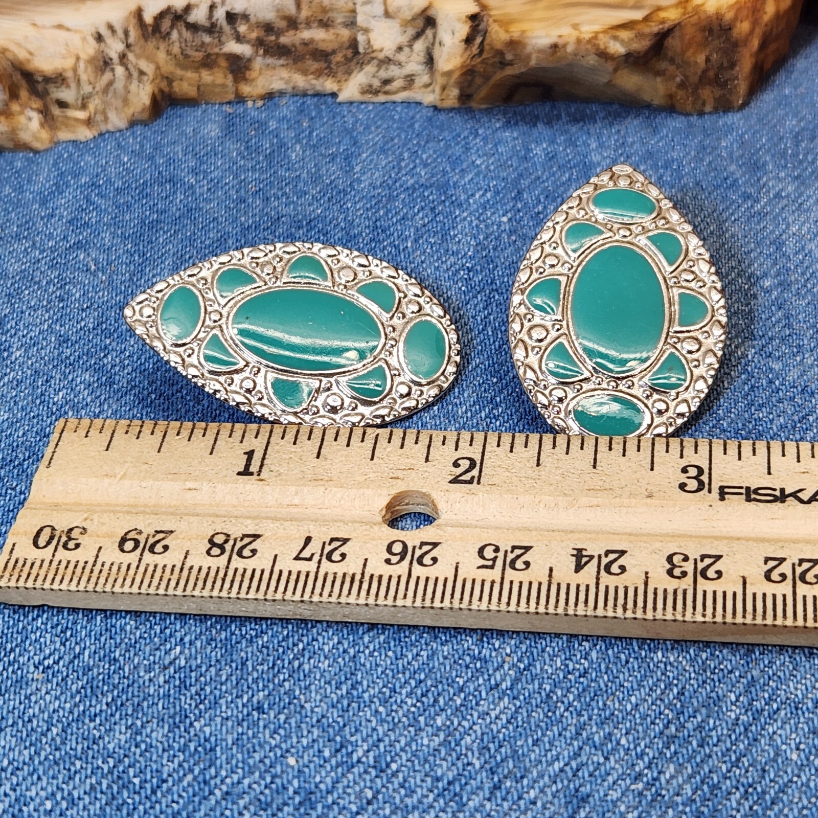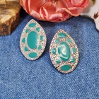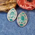 Unique Southwest pierced ear Silver tone 1.75" Multi Blue-green Earrings Western Boho. Simulated Turquoise colored enamel post backs.
