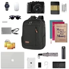 High Quality Material: The laptop backpack is made of good environment-friendly poly fabric with new function of water-repellent, which is quite durable. Dimensions: 18.5"x13.3"x7.8".Weight: 2.64LBS. Larger roomy compartments can provide separated space for computer, iPad, A4 files, wallet, clothes, power bank and more your items. Organizer dimensions fits up to 17.3 inch laptop. Please notified: This is not a small backpack, It's big and with large capacity. Built-in USB PORT is convenient to charge your cell phone by the connected power bank (POWER BANK is not included). Special design for your computer, with well-padded foam close to your back tightly. PU leather logo and pullers.Ergonomics and adjustable padding shoulder straps and sturdy handle offer you comfort carrying for a long time. A well-knit luggage strap is quite convenient for you to fix the laptop bag on the trolley of your luggage, making your journey and traveling more convenient wherever you go.